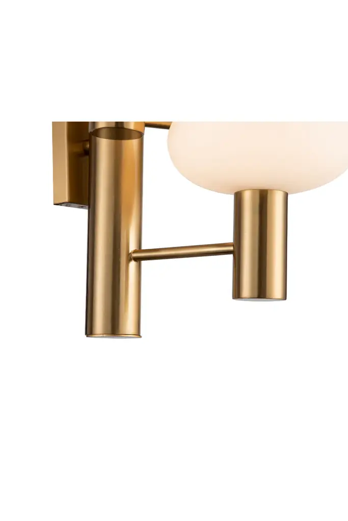 The Eliseo Wall Lamp features a modern design and adds a touch of luxe to any interior. This wall lamp boasts a globe design made from white glass and is finished in brass.