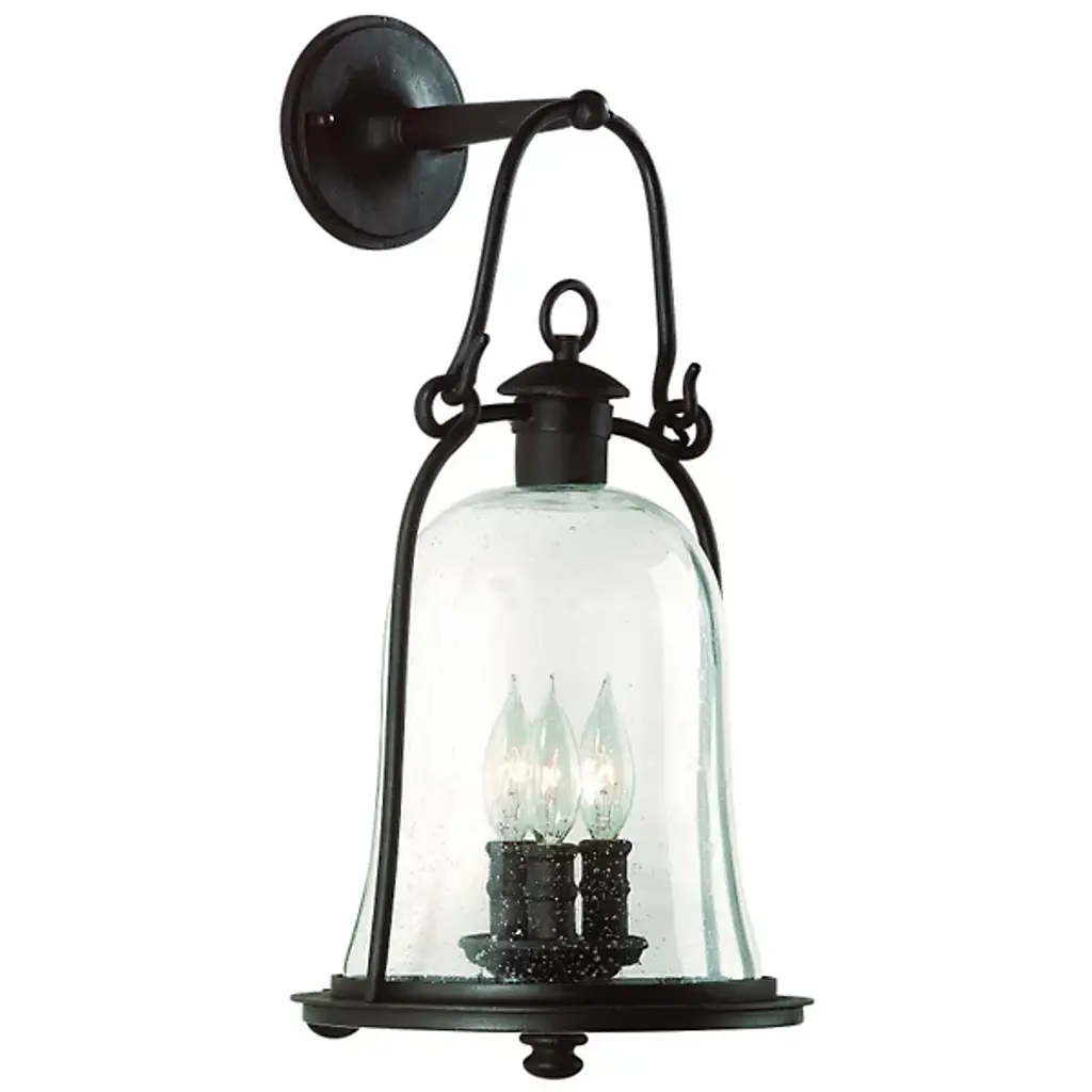 With traditional American design, the Troy Lighting Owings Mill Outdoor Wall Sconce makes the ideal fixture for adorning and illuminating the exterior of a carriage house-style garage or front door. It features a bell-shaped seeded glass shade held within a simple curved frame of hand-forged iron finished in rich Natural Bronze. Available in three sizes.