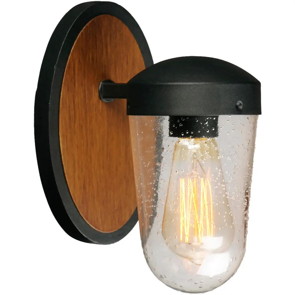 Oxbridge 1-Light Wall Sconce, Matte Black & Painted Wood-Look Metal/clear Bubble