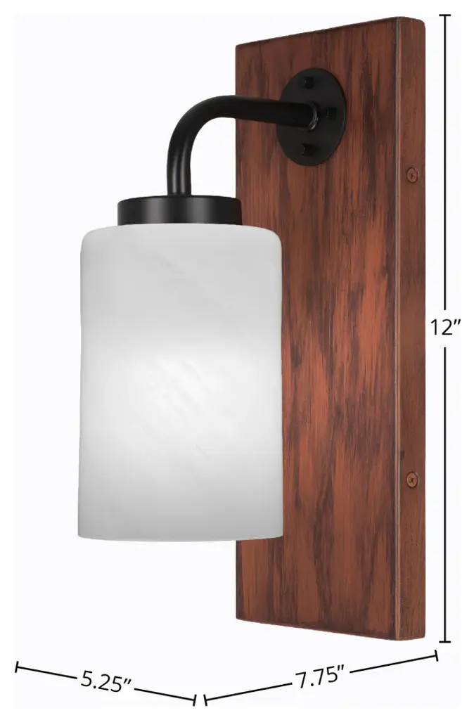 Oxbridge 1-Light Wall Sconce, Matte Black & Painted Wood-Look Metal/white Marble