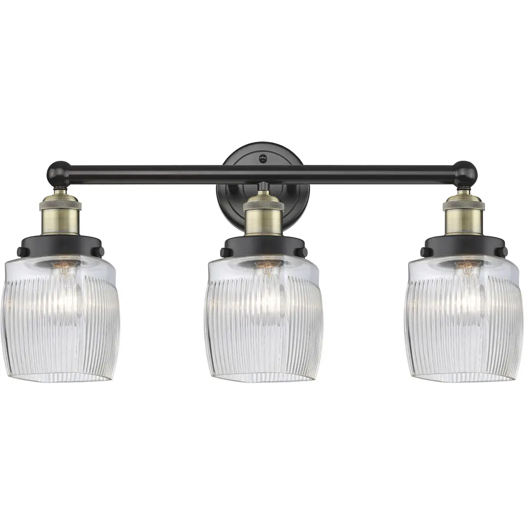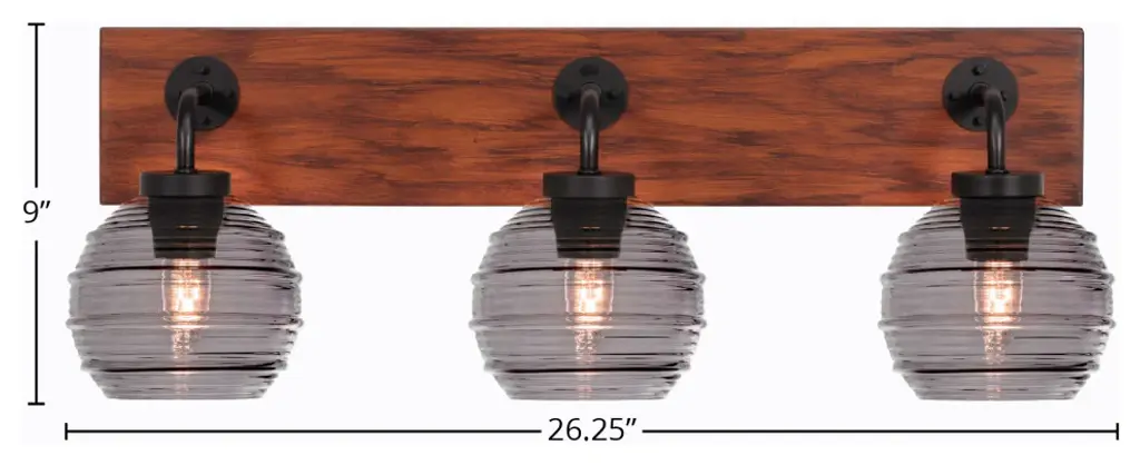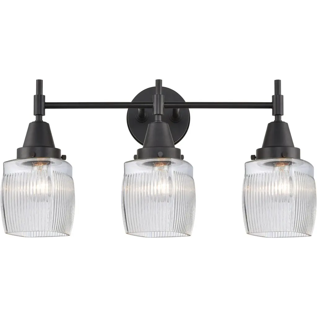 Oxbridge 3-Light Bath Bar, Matte Black & Painted Wood-Look Metal/smoke Ribbed