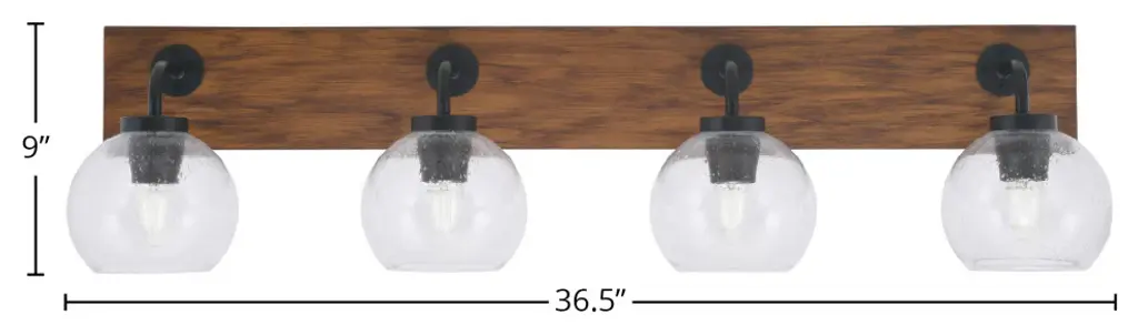 Oxbridge 4-Light Bath Bar, Matte Black & Painted Wood-Look Metal/clear Bubble