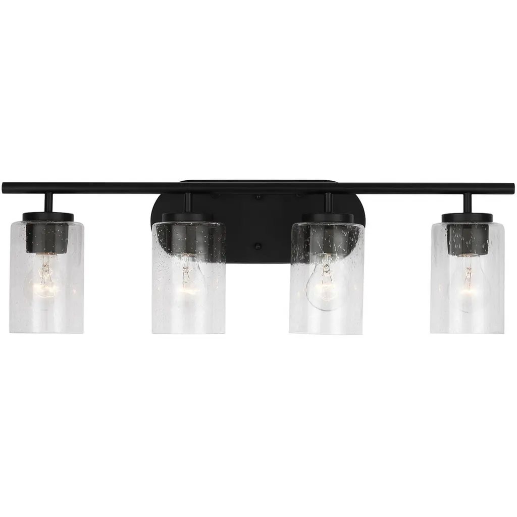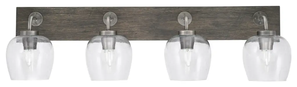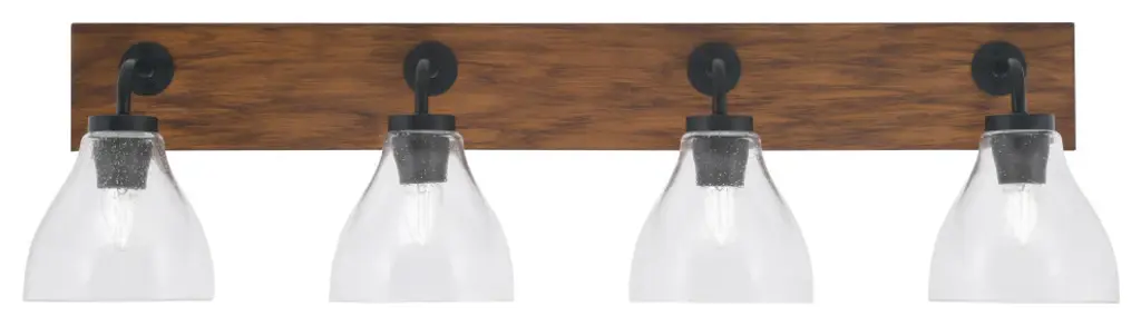 Oxbridge 4-Light Bath Bar, Matte Black & Painted Wood-Look Metal/clear Bubble