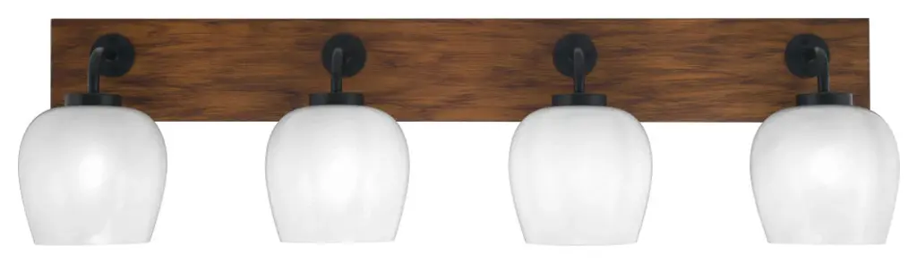 Oxbridge 4-Light Bath Bar, Matte Black & Painted Wood-Look Metal/white Marble