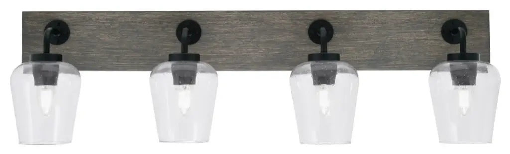 Oxbridge, Bath Bar, Matte Black & Painted Distressed Wood-Look, 5" Clear Bubble