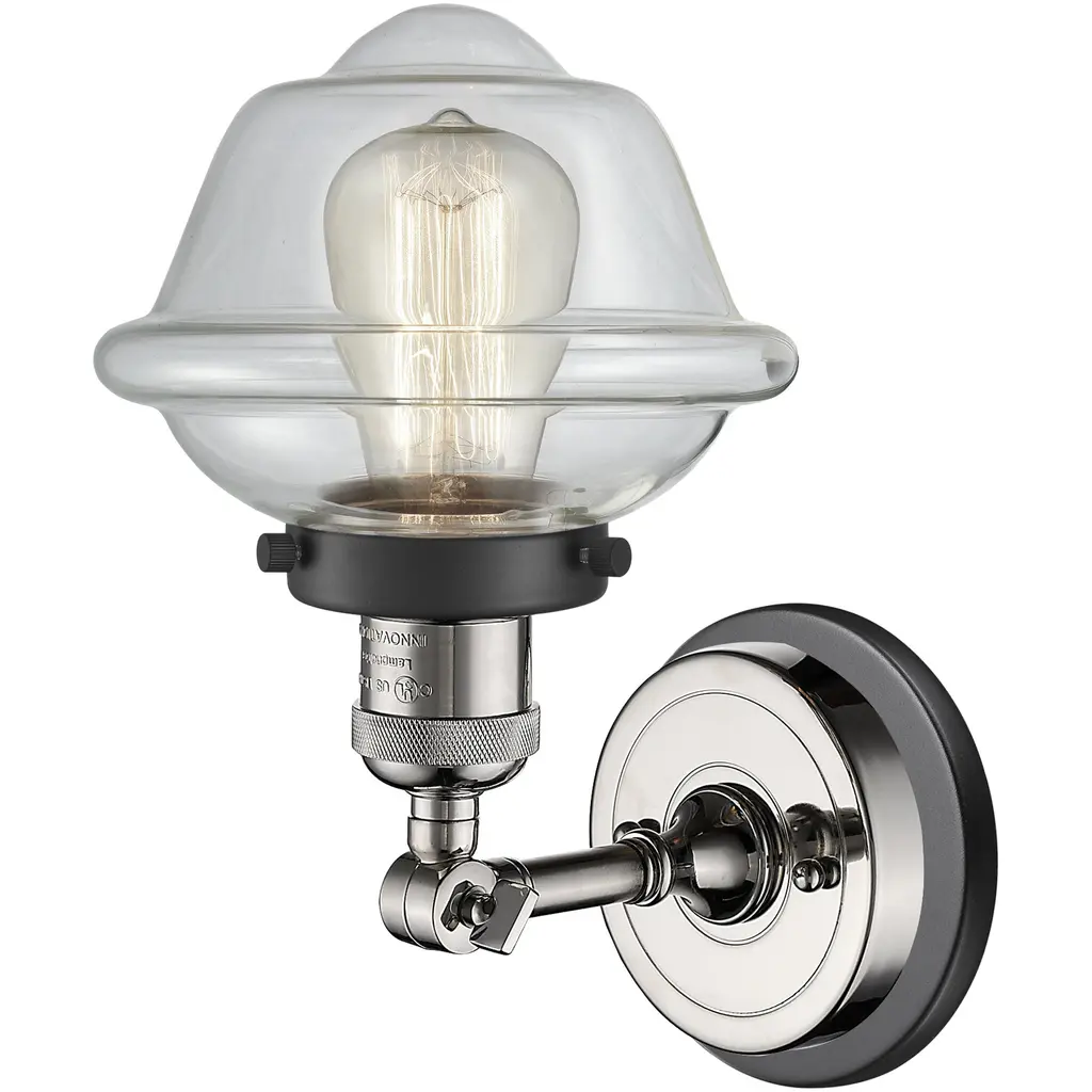 Franklin Restoration - Oxford - 1 Light 8" Sconce - Polished Nickel Finish - Matte Black Accent Backplate - Clear Shade