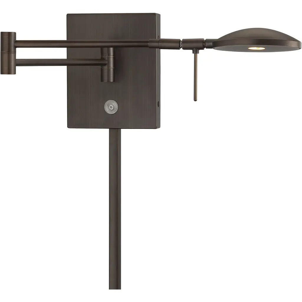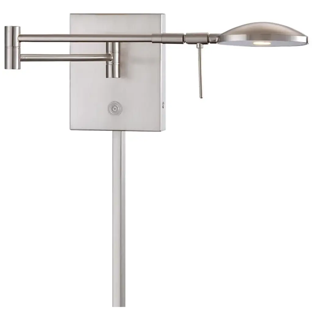 The George Kovacs P4308 Swing Arm Wall Sconce is sleek, adjustable and energy efficient. It features a bright (and dimmable) LED array housed inside a puck-shaped head. The arm swings out and the head swivels for the ideal orientation of light. Can be hardwired or installed with the included pin-up kit. Available in five finishes.