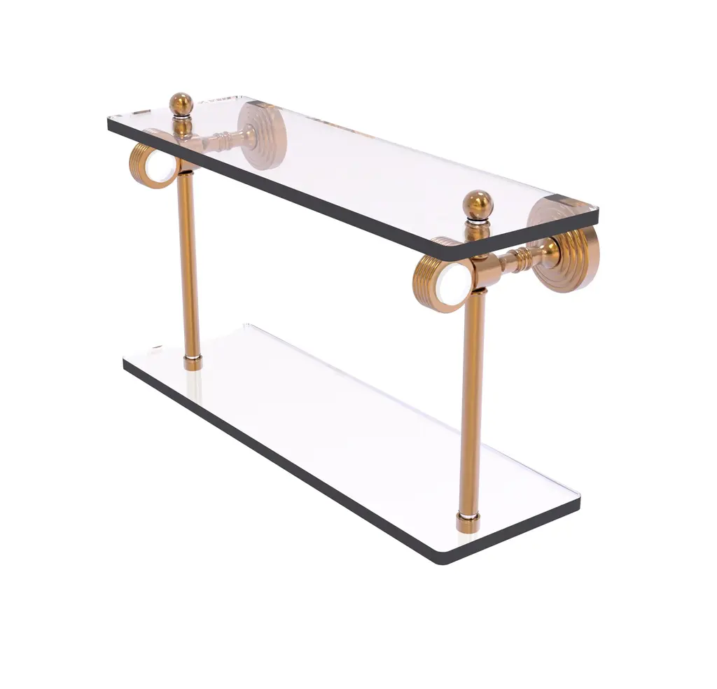 Pacific Grove 16" Two Tiered Glass Shelf With Groovy Accents, Brushed Bronze