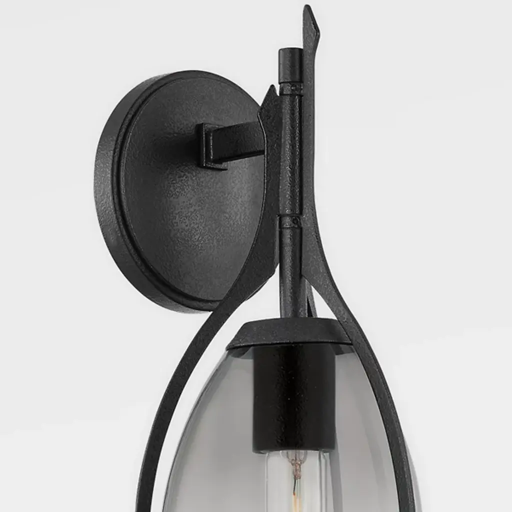 The Pacifica Wall Sconce from Troy Lighting provides a retro impact to interiors with a soft industrial vibe and a definite French feel. Extending from a round, stepped wall plate, its forged iron arms descend around an inverted candelabra lamp, delicately holding a smooth, ombre smoke glass shade while arrow-like accents add visual appeal. Balancing robust metal with clean-surfaced glass, Pacifica brings a certain je ne sais quoi to any room.