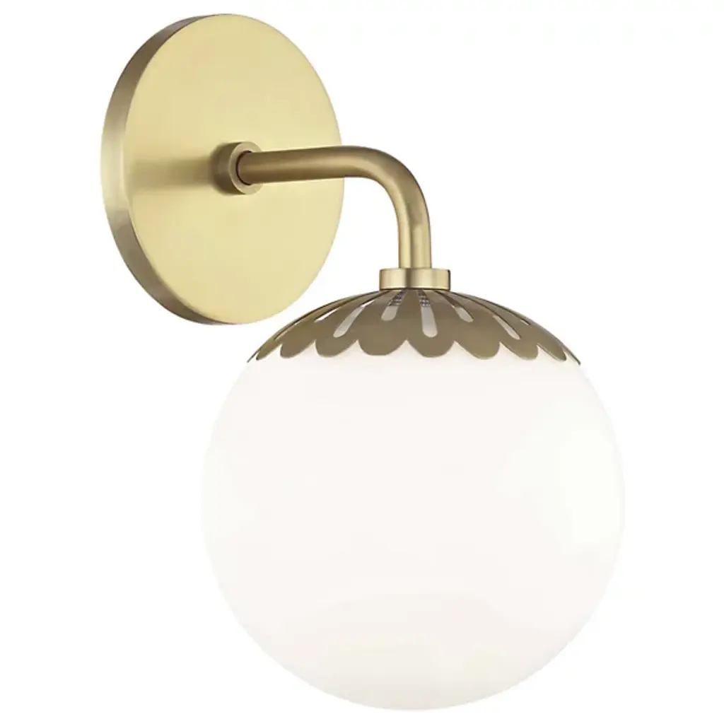 The Mitzi Paige Wall Sconce has a classic look with a contemporary edge. The Glass shade fits snuggly against the minimalist Steel frame, offering complementary lines and contrasting finishes. The artistic detail of the body adds an appealing dimension without taking focus from the elegant lens and delicate lighting.