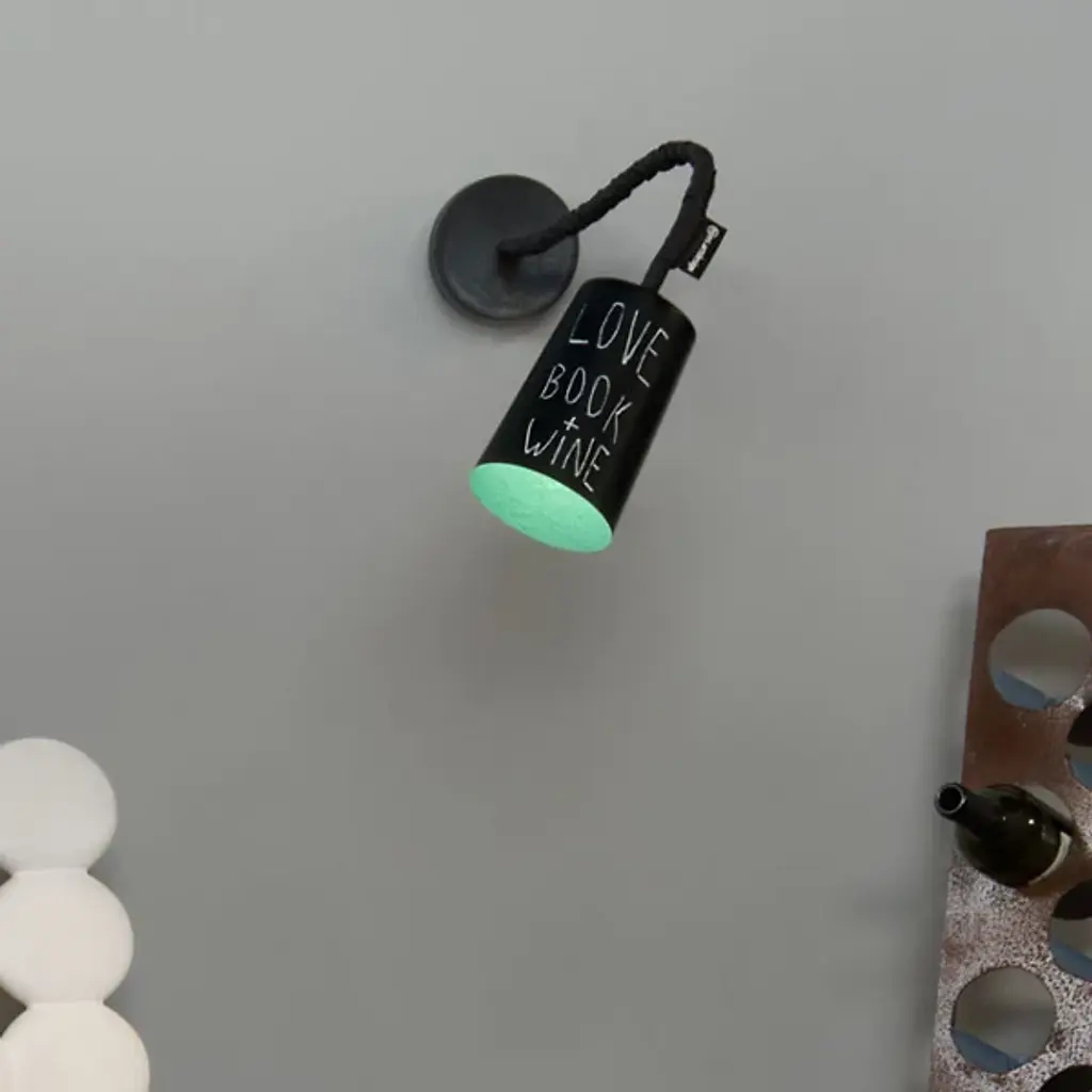 With a design inspired by the tactility of mixed materials, the PAINT A LAVAGNA Wall Sconce from In-Es Art Design combines eclectic style with functionality. A circular wall mount supports an adjustable fabric-covered arm leading to a cylindrical steel shade. It is finished with a blackboard cement paint, offering a blank canvas for chalk decoration and giving the piece a playful air. Its light is enhanced by its Nebulite interior, a specially designed material with a textural and organic look.