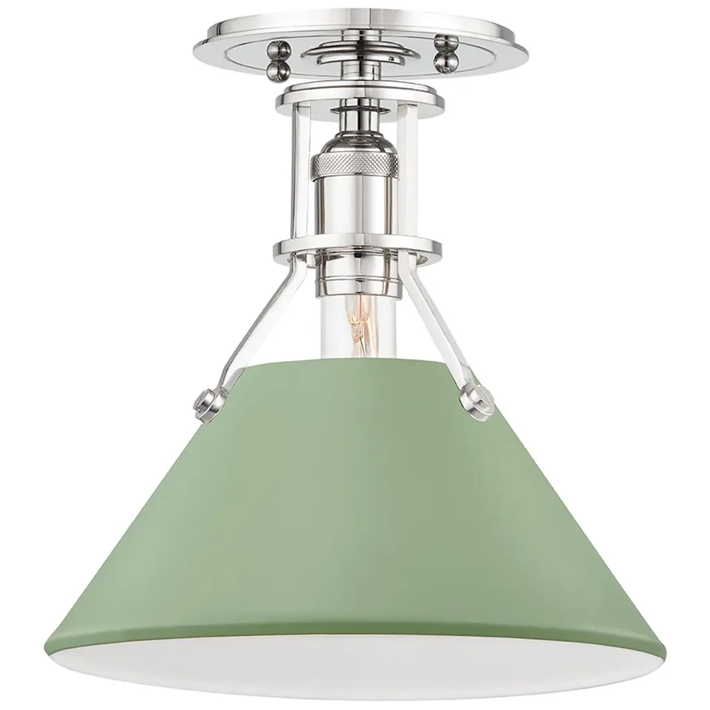 The contrast between the gleaming metal hardware and the painted exterior of the metal shade brings contemporary flair to this retro-chic sconce. Because the sconce is damp rated, you can use it in your bathroom as well as beside your bed, in an entryway, or just about anywhere else in your home.