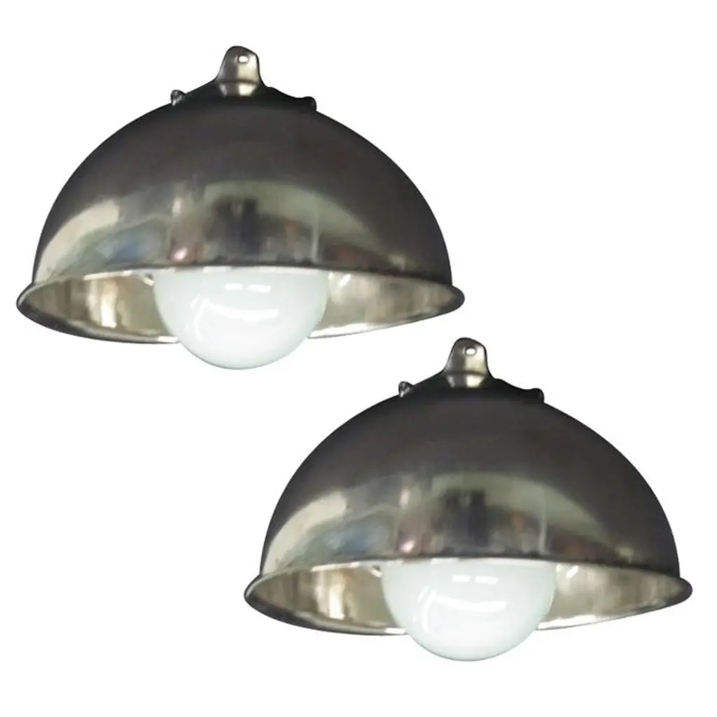 Pair French Mid-Century Marine Industrial Flush Mounts Or Sconces, Jean Prouve