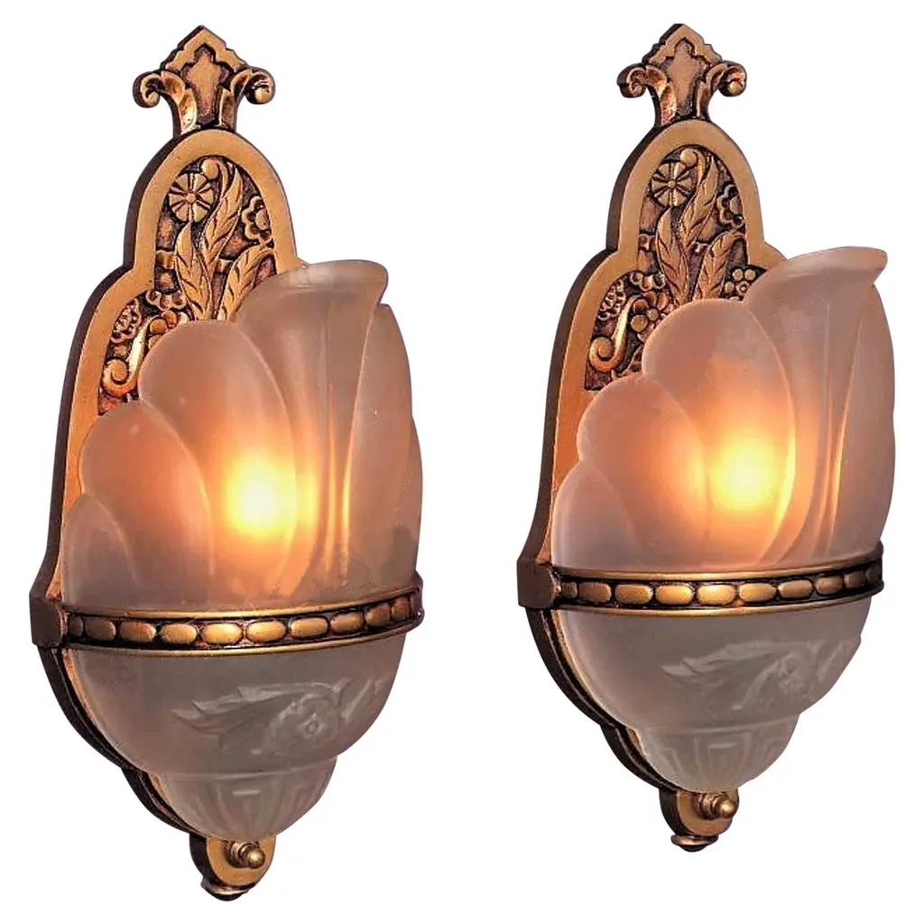 Pair Of Deco Leaf Sconces, 2 Pairs Available