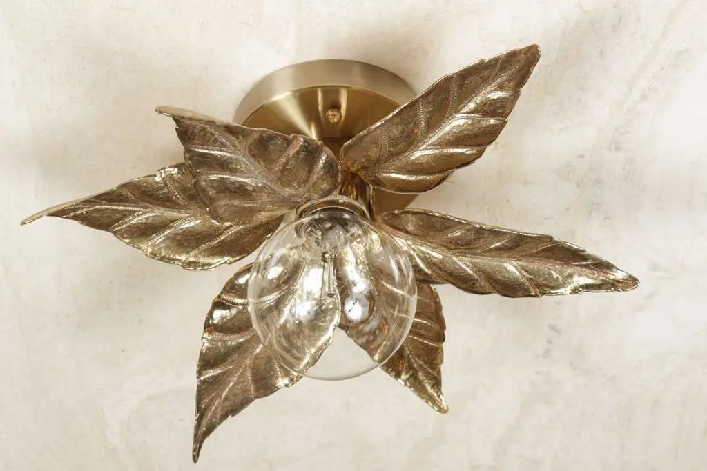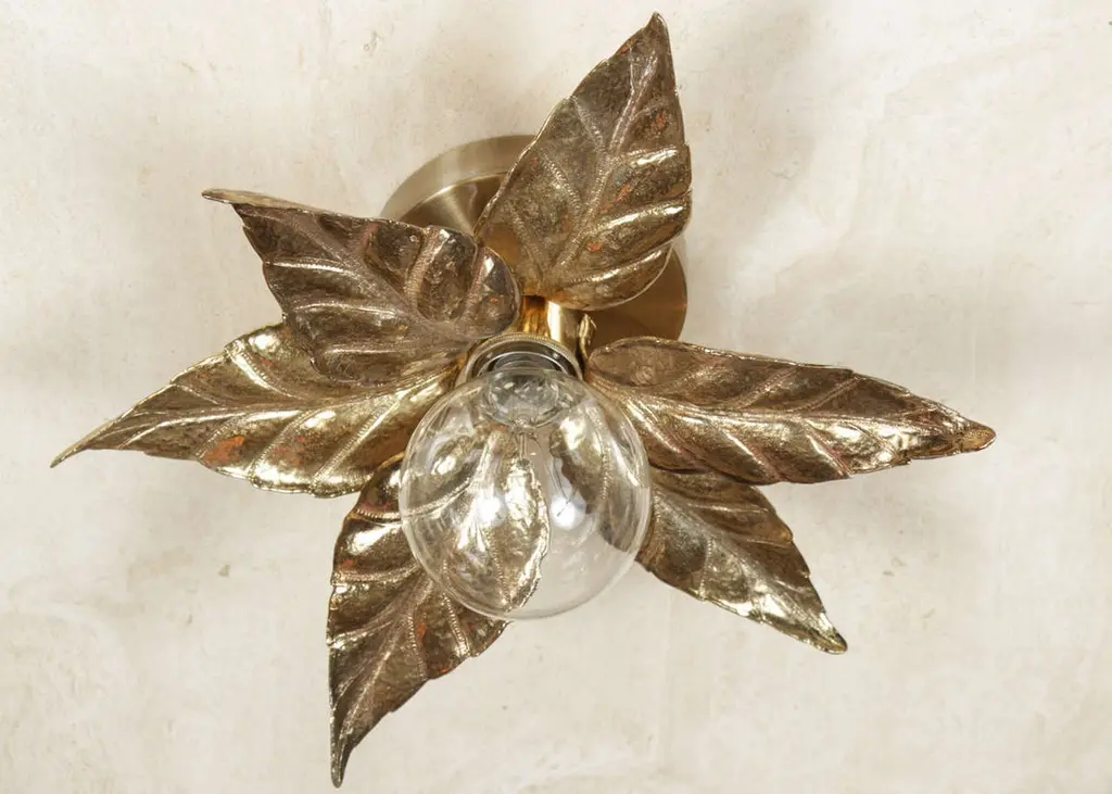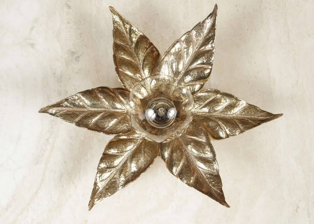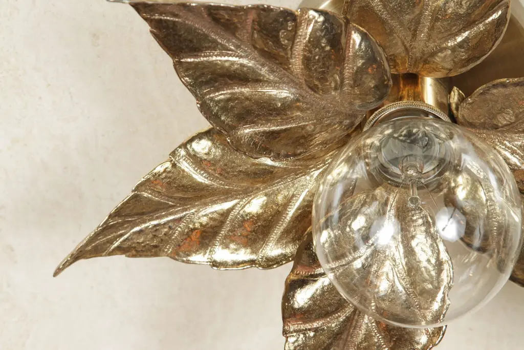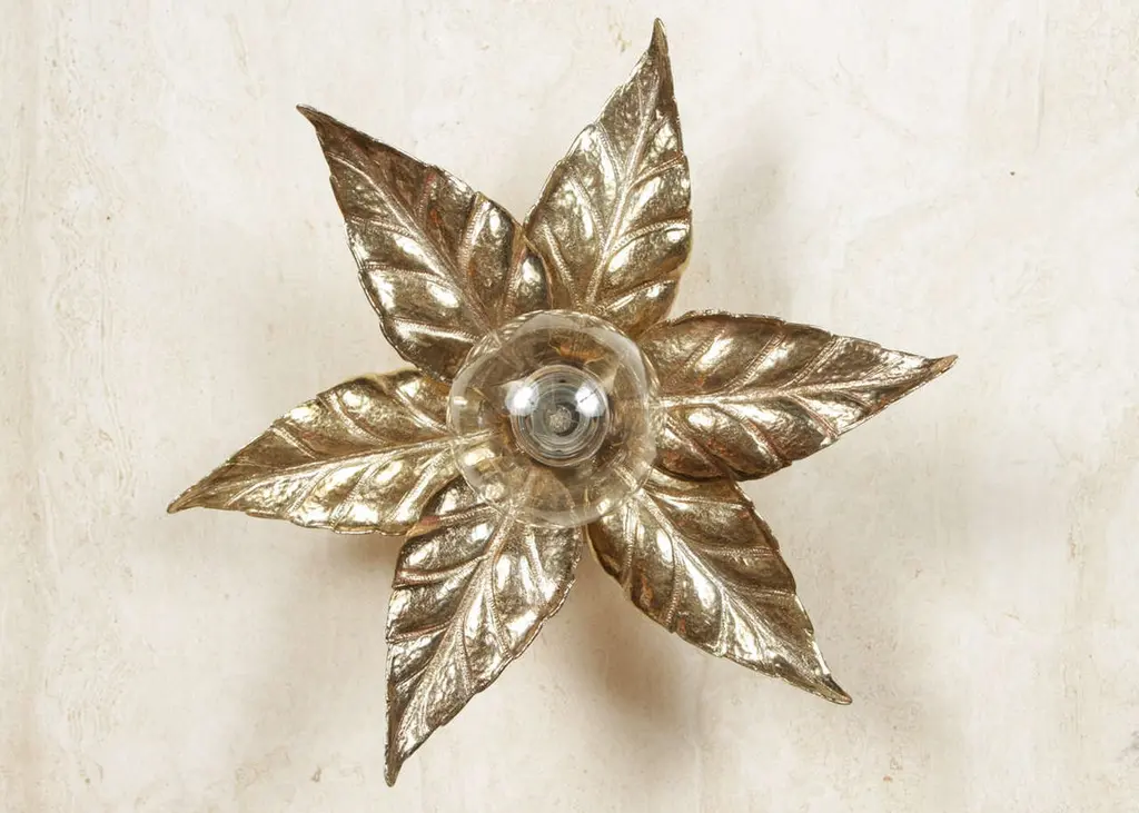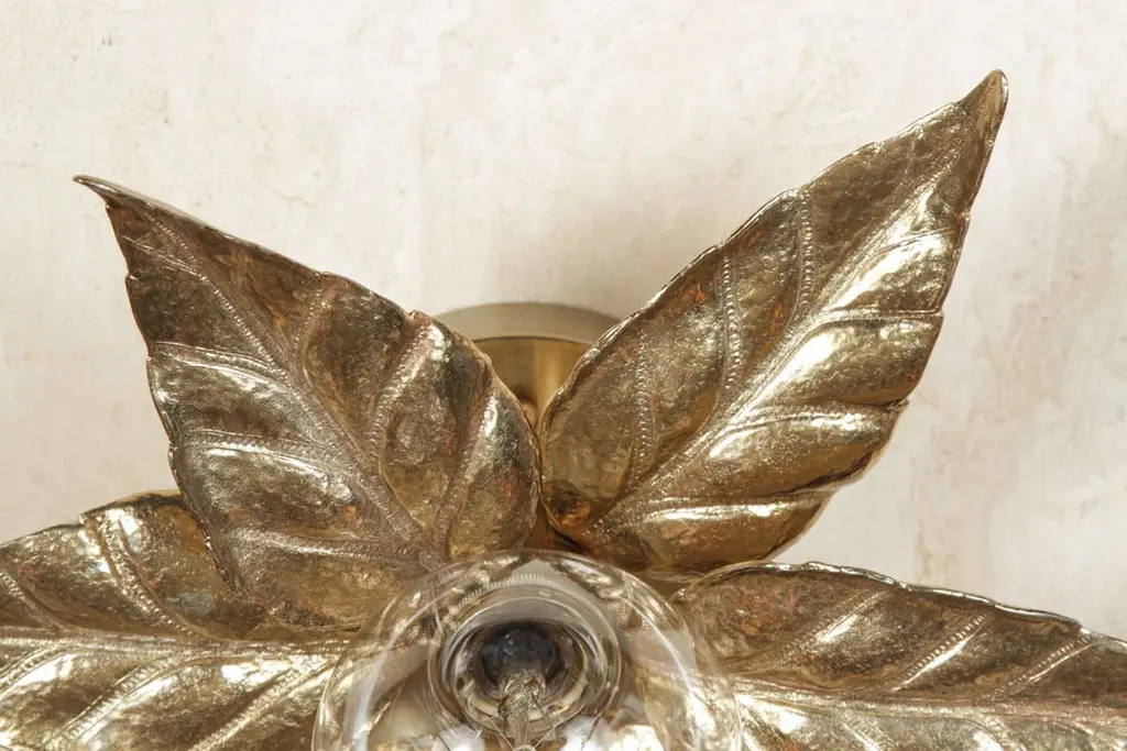 Pair of elegant floral sconces in a Antique polished gold finish with a single centre light source. ( 3 Pairs Available)