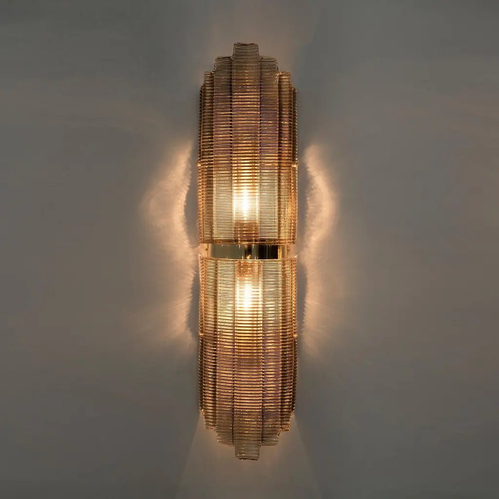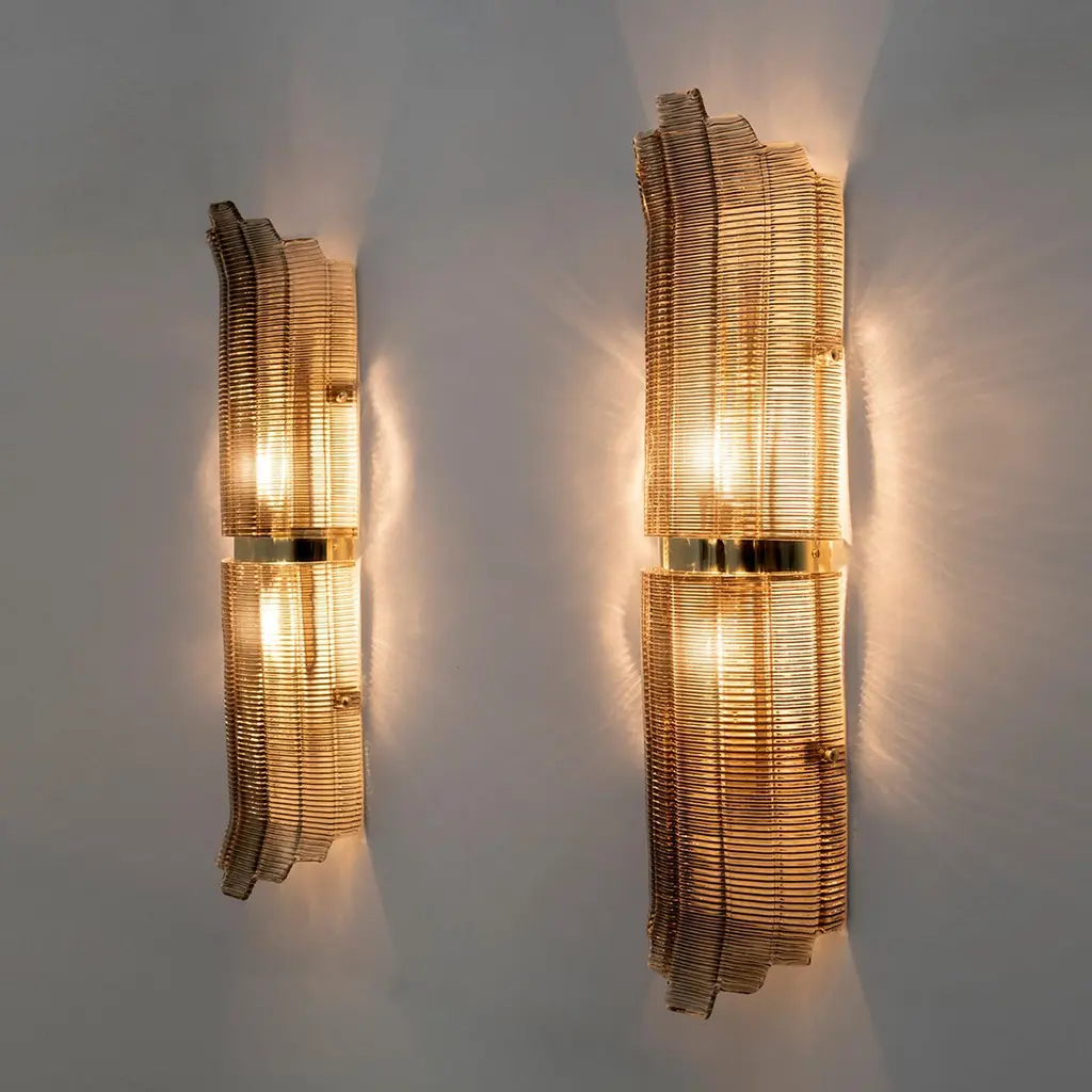 Pair Of Large Art Deco Style Murano Glass Textured Wall Sconces
