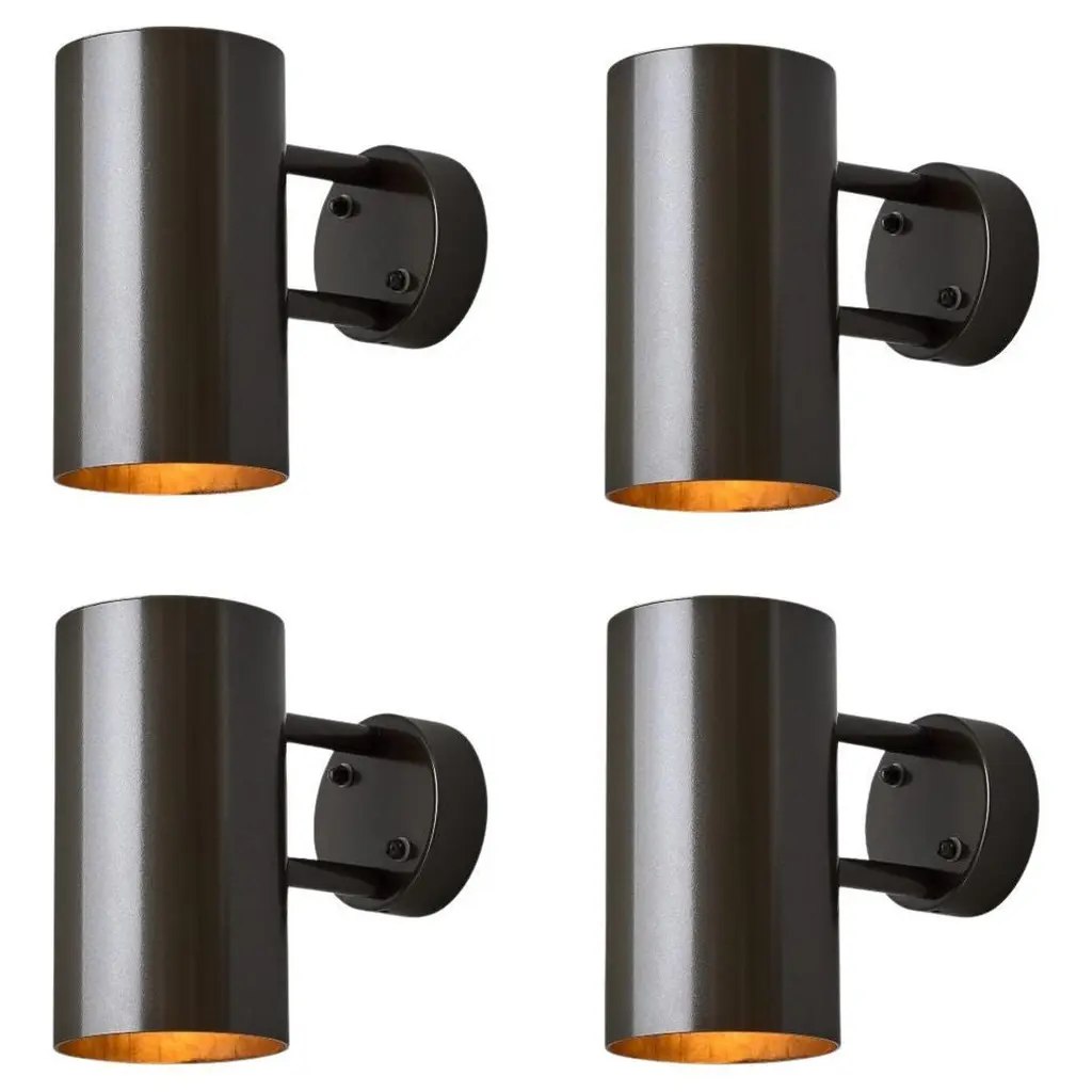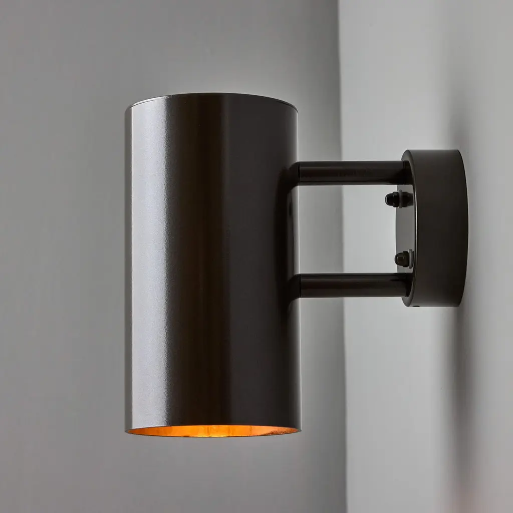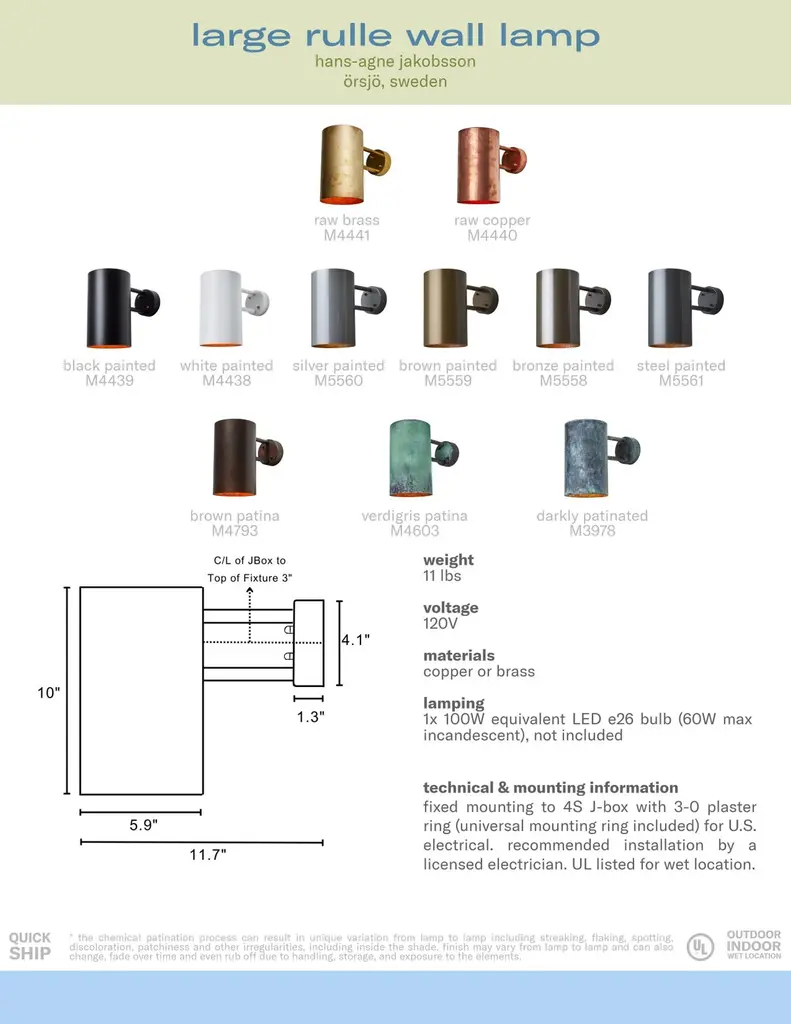 Pair of Large Hans-Agne Jakobsson C627 'Rulle' Outdoor Sconces in Painted BronzeAn exclusive made for U.S. and UL listed authorized re-edition of the classic Swedish design executed in painted metal with a raw metal interior. An incredibly refined design that is quintessentially Scandinavian. Also available in smaller size. Price is per pair Available in unlimited quantities in choice of raw brass, raw copper, verdigris, darkly patinated verdigris, dark brown patinated, and brown, bronze, silver, steel, white or black painted metal. This listing is for a pair of the painted bronze variant. Other colors and finishes available in separate listings. Several raw copper & brass lamps in-stock and ready to quick ship. Patinated and painted variants are made to order in approximately 1-2 weeks, but can be expedited for an additional fee. Please note that in-stock inventory availability can change at any time. For time-sensitive orders, kindly inquire prior to purchasing. Authorized re-edition newly produced by Orsjo, Sweden. Professionally wired for US electrical. For indoor or outdoor use. Hardwires to a US junction box. Accommodates a single standard medium base 100W equivalent LED bulb (or 60W incandescent), per sconce. UL listed.Please note only one representative example of the lamps is featured in the photos. Some variation in the raw metal interior from lamp to lamp.Made to order. All sales are final.