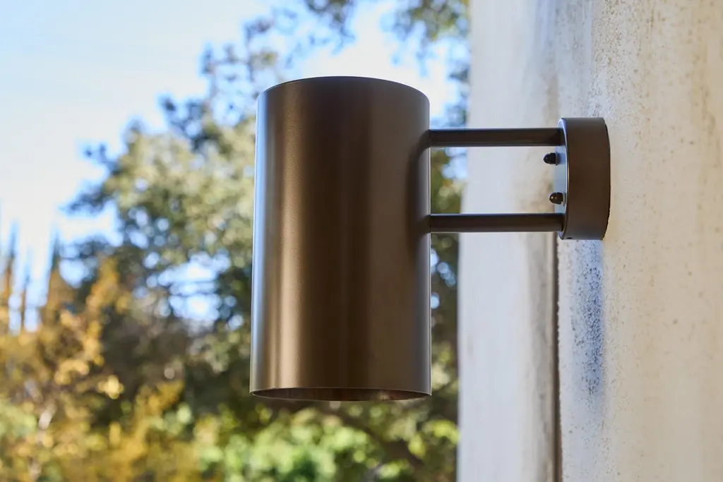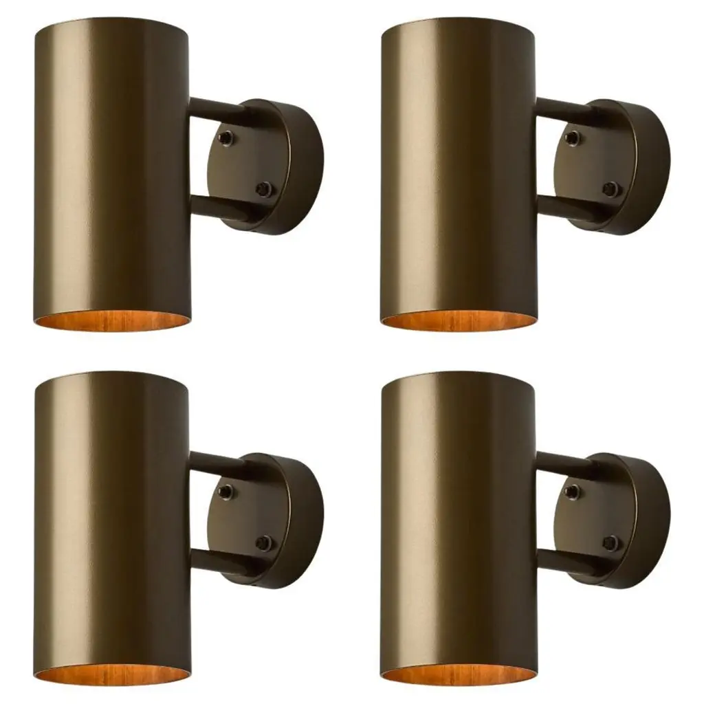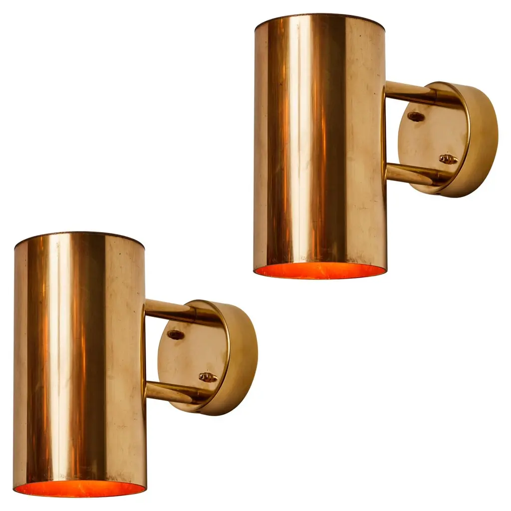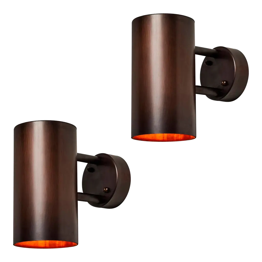 Pair of Large Hans-Agne Jakobsson C627 'Rulle' Outdoor Sconces in Painted BrownAn exclusive made for U.S. and UL listed authorized re-edition of the classic Swedish design executed in painted metal with a raw metal interior. An incredibly refined design that is quintessentially Scandinavian. Also available in smaller size. Price is per pair. Available in unlimited quantities in choice of raw brass, raw copper, verdigris, darkly patinated verdigris, dark brown patinated, and brown, bronze, silver, steel, white or black painted metal. This listing is for a pair of the painted brown variant. Other colors and finishes available in separate listings. Several raw copper & brass lamps in-stock and ready to quick ship. Patinated and painted variants are made to order in approximately 1-2 weeks, but can be expedited for an additional fee. Please note that in-stock inventory availability can change at any time. For time-sensitive orders, kindly inquire prior to purchasing. Authorized re-edition newly produced by Orsjo, Sweden. Professionally wired for US electrical. For indoor or outdoor use. Hardwires to a US junction box. Accommodates a single standard medium base 100W equivalent LED bulb (or 60W incandescent), per lamp. UL listed.Please note only one representative example of the lamps is featured in the photos. Some variation in the raw metal interior from lamp to lamp.Made to order. All sales are final.
