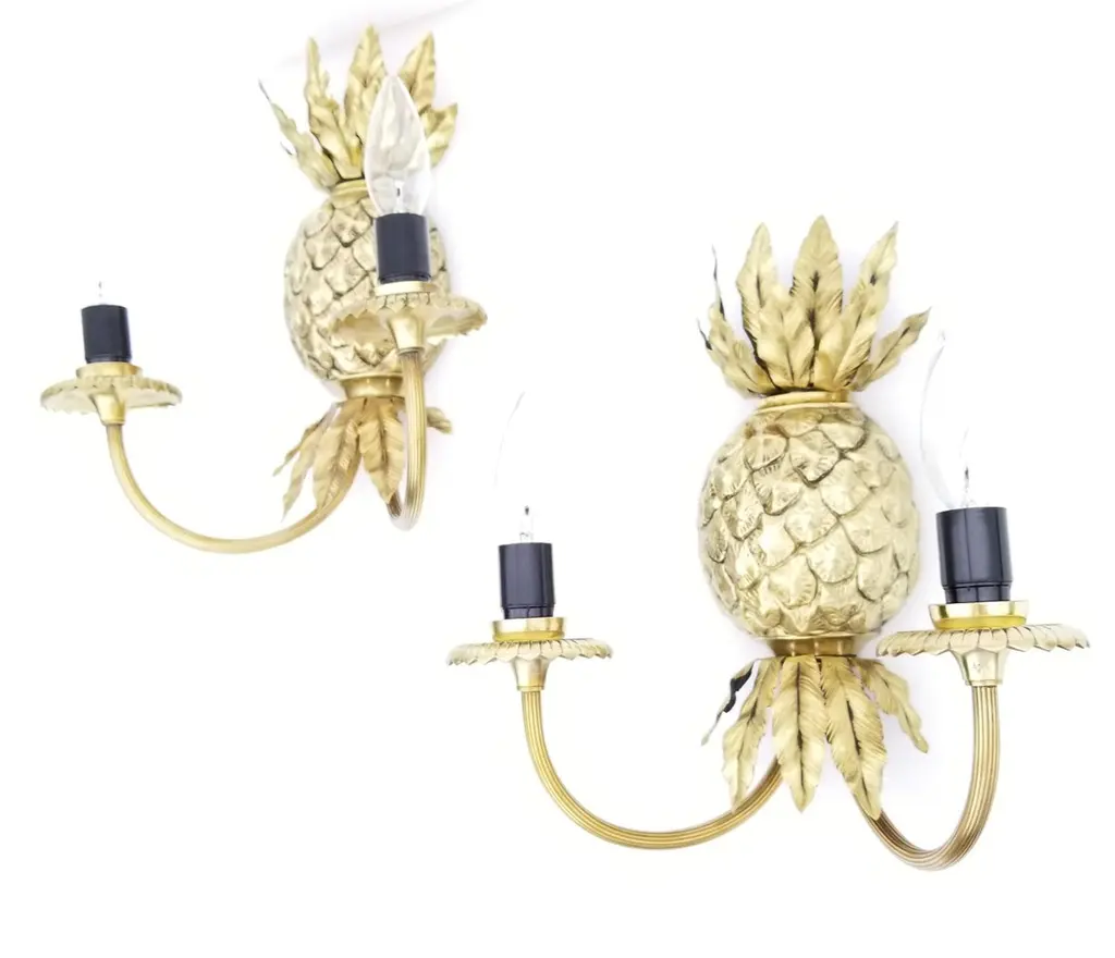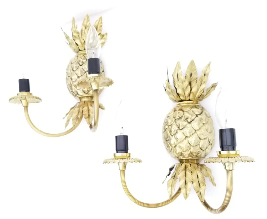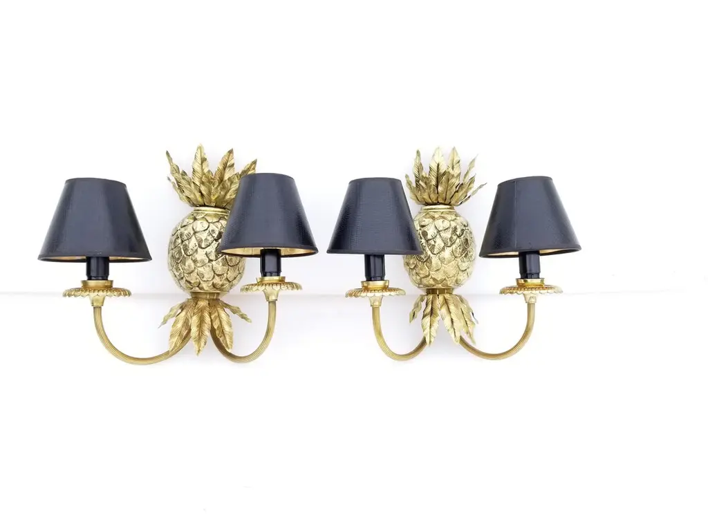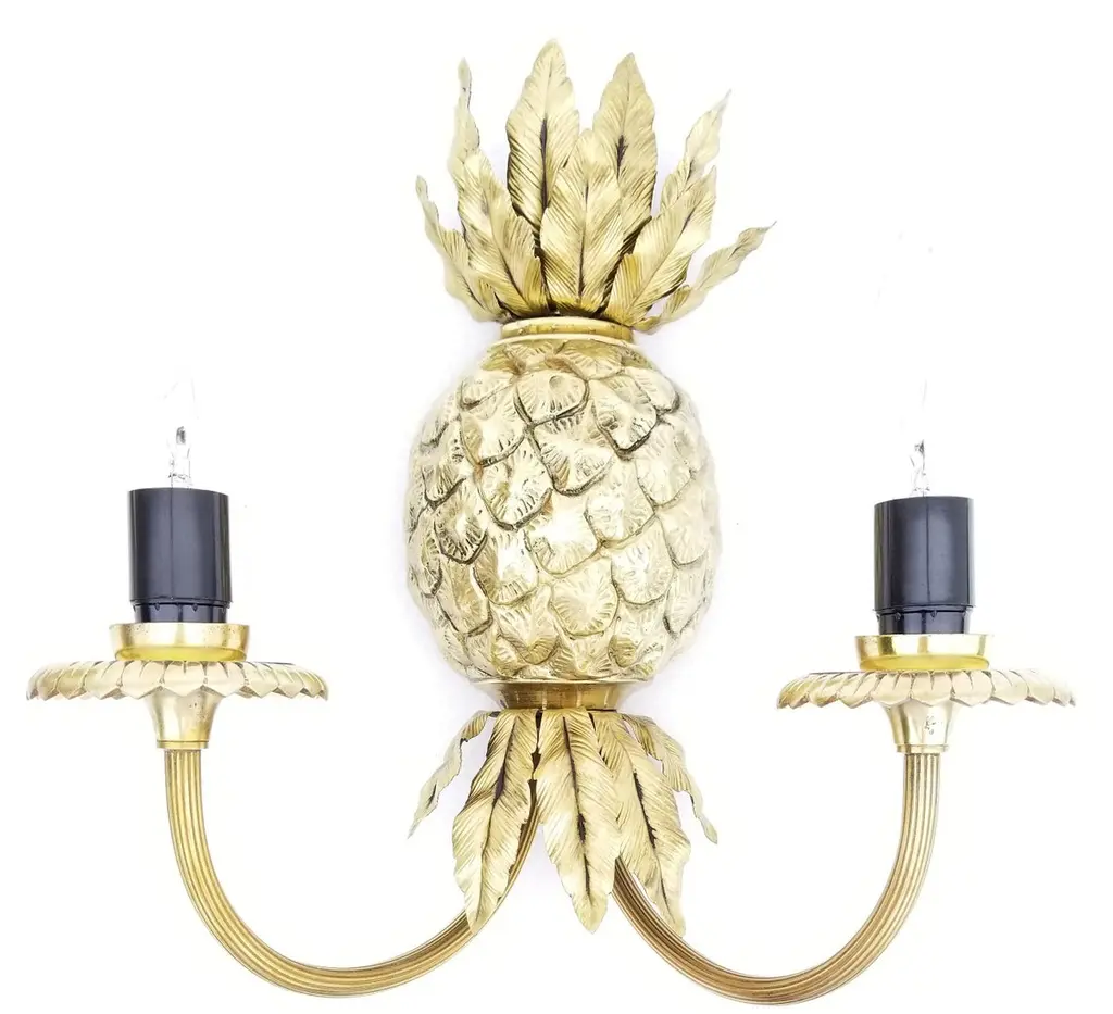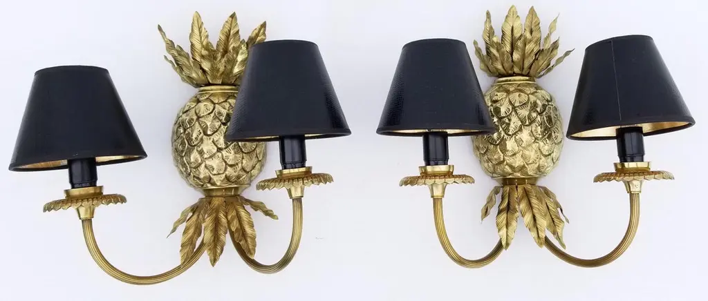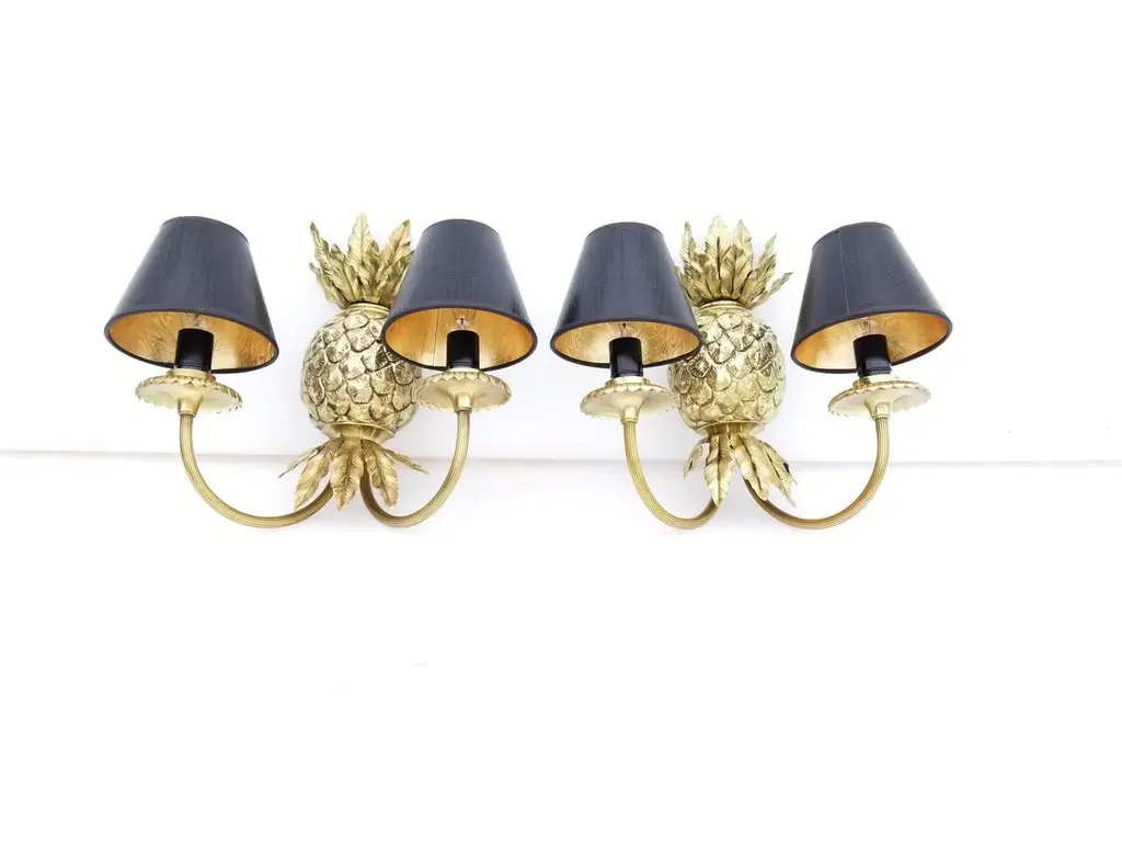 Pair Of Maison Charles Pineapple Bronze Sconces France, 2 Pairs Available