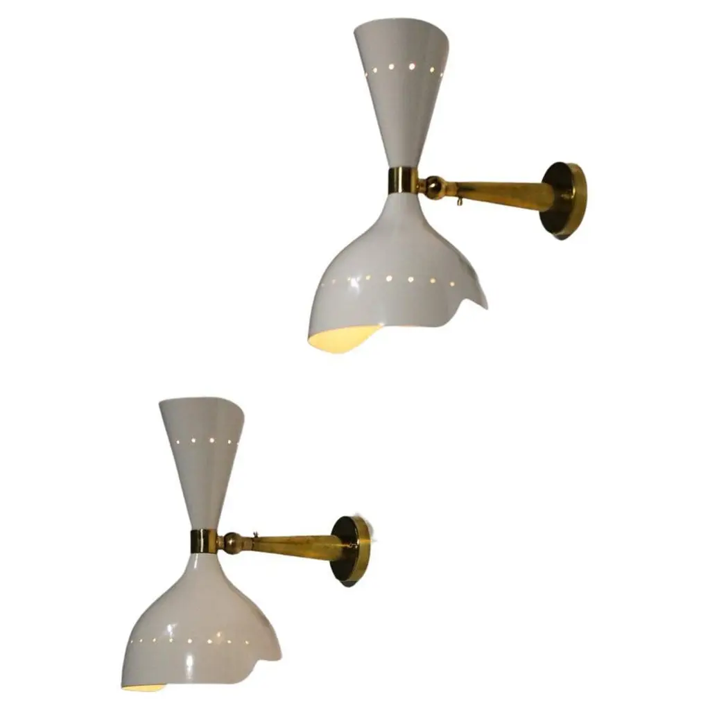 Pair Of Midcentury Shade Sconces, 4 Pairs Available