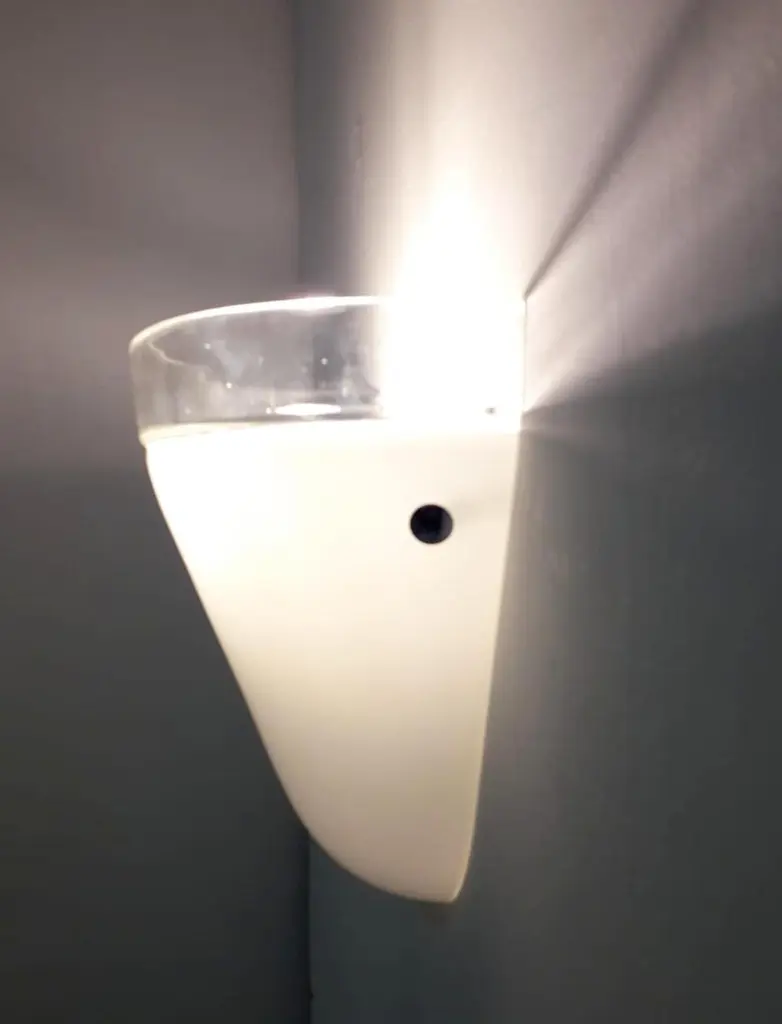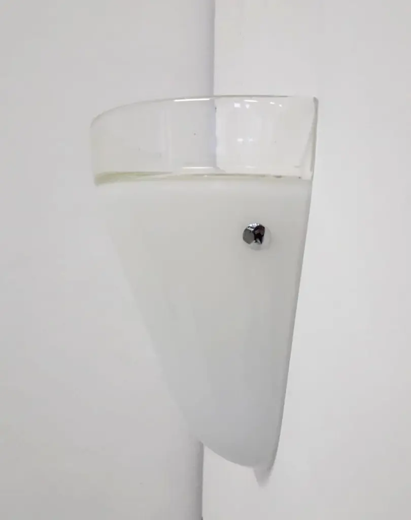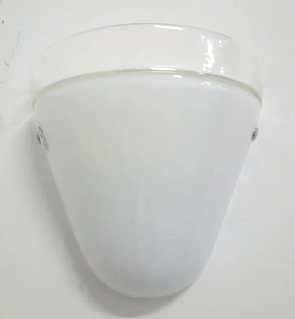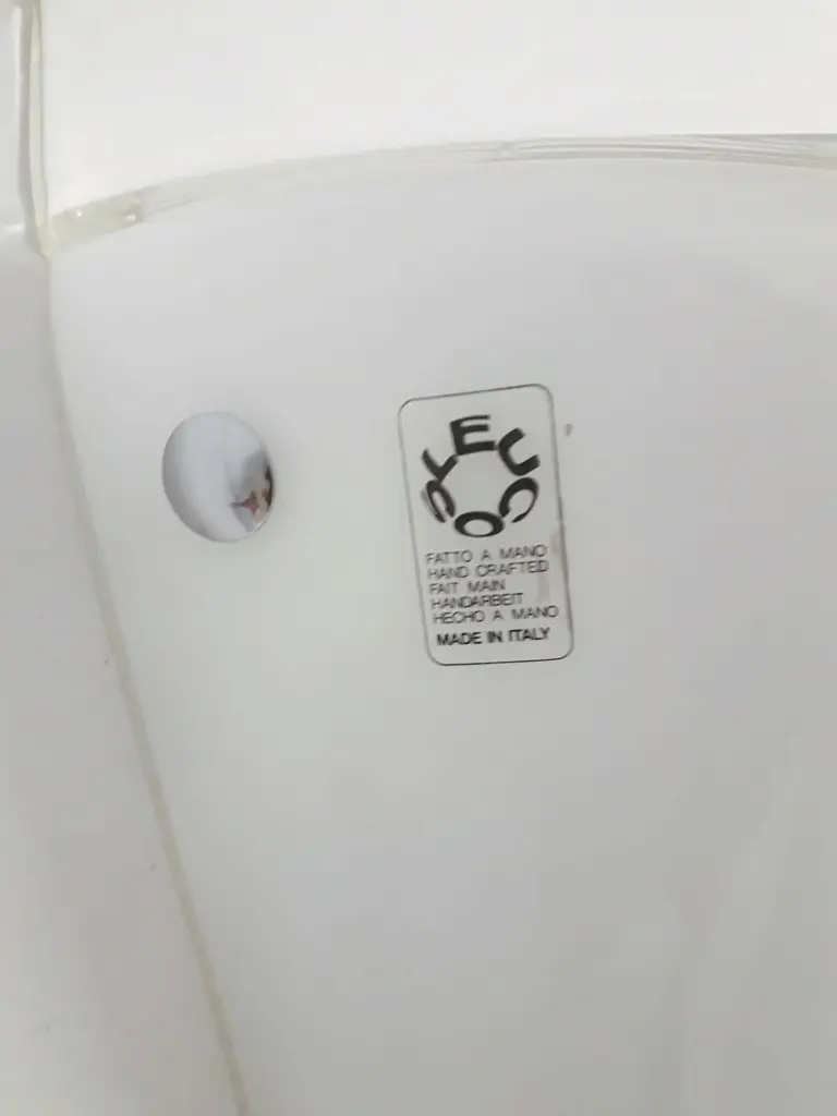 Vintage original Italian wall lights from a midcentury hotel in Milan Italy, with milky white Murano glass shades mounted on white metal brackets / Made in Italy by Leucos, circa 1960sOriginal sticker on the glassMeasures: height 9.5 inches, width 10 inches, depth 5 inches1 light / E26 or E27 type / max 60W3 pairs available in stock in Italy, price listed is for each pairOrder reference #: FABIOLTD K24