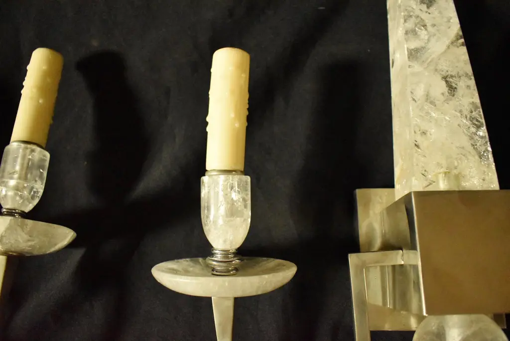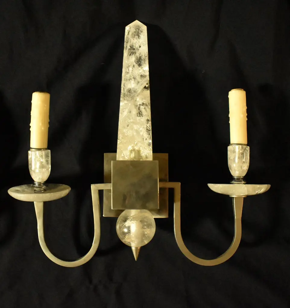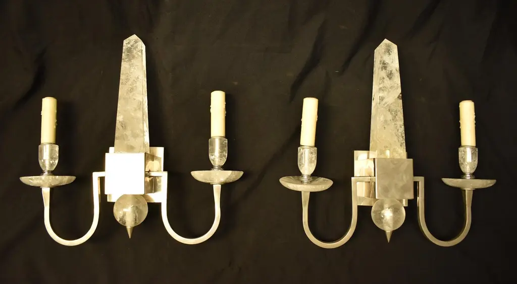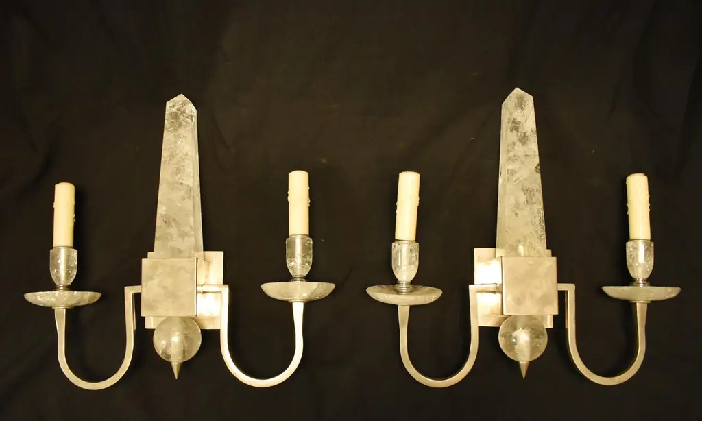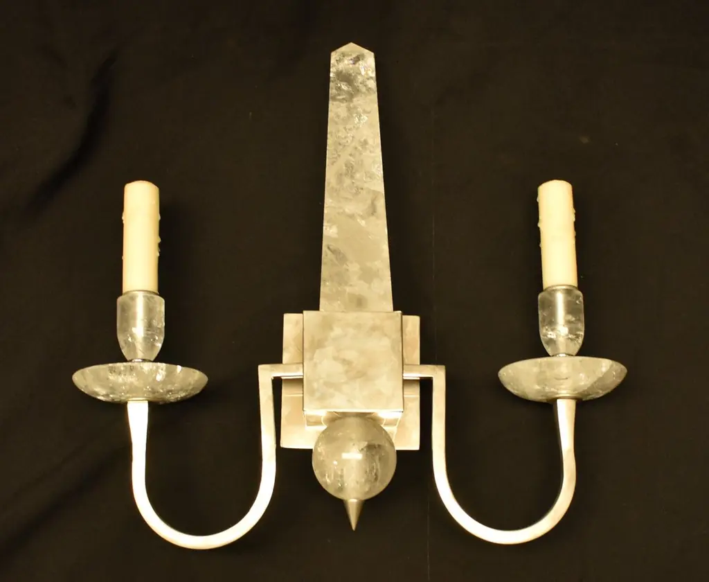 Pair Of Modern Style Rock Crystal Obelisk Sconces