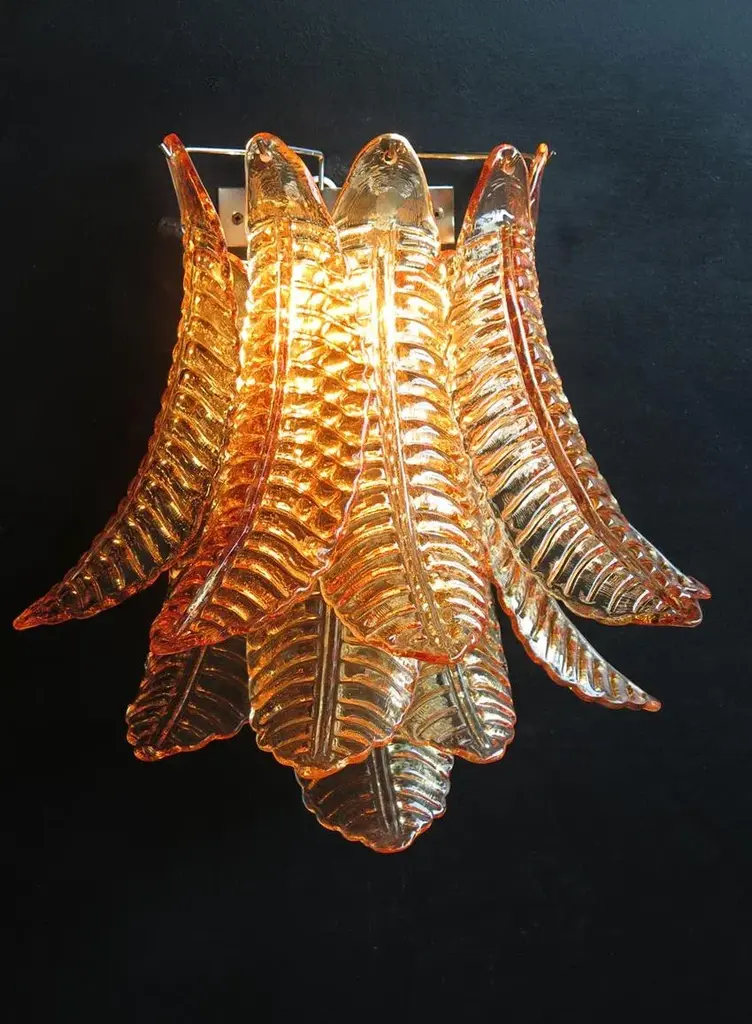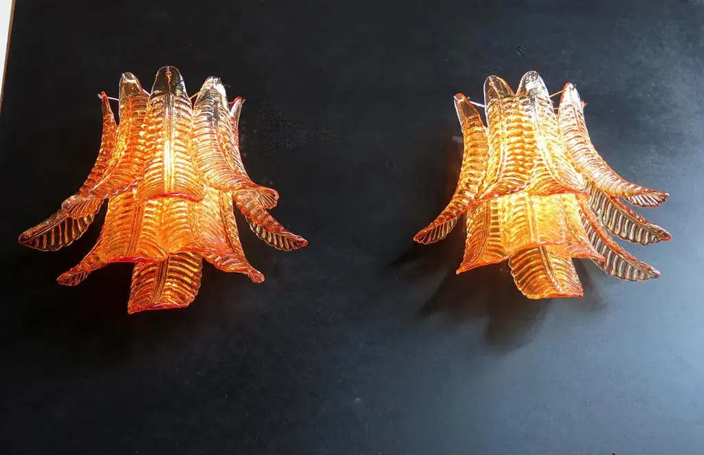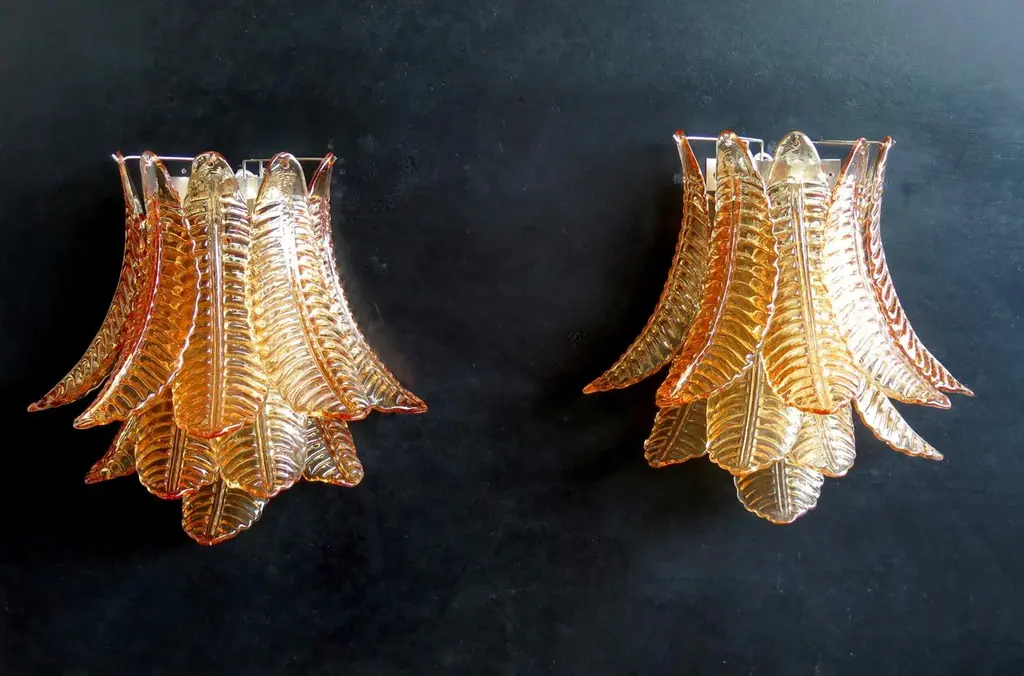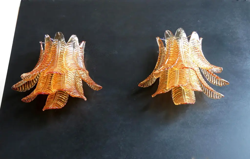 Pair Of Murano Six-Tier Felci Wall Sconce – 10 Amber Glasses