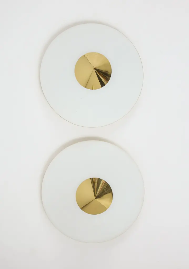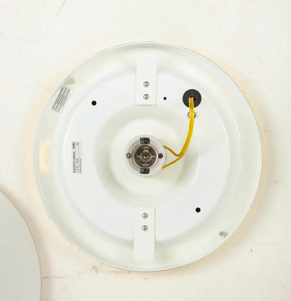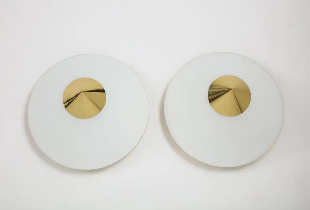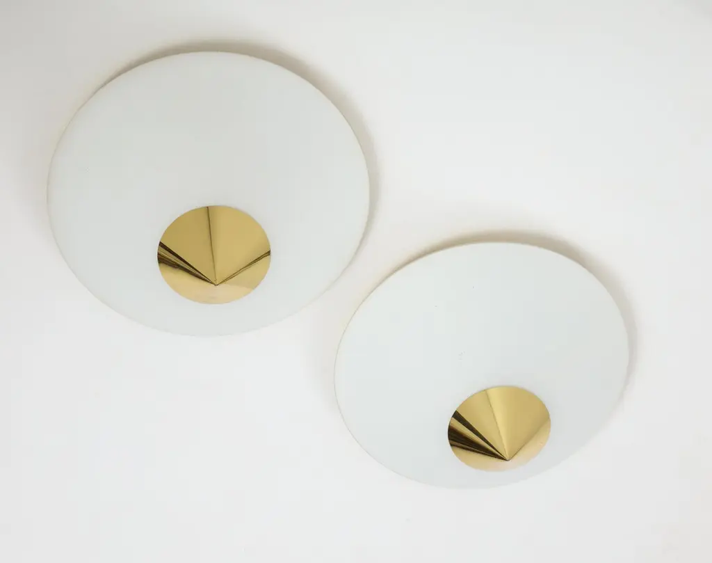 Pair Of Opaline And Brass Flush Mount / Sconce By Limburg ( 3 Pairs Available )