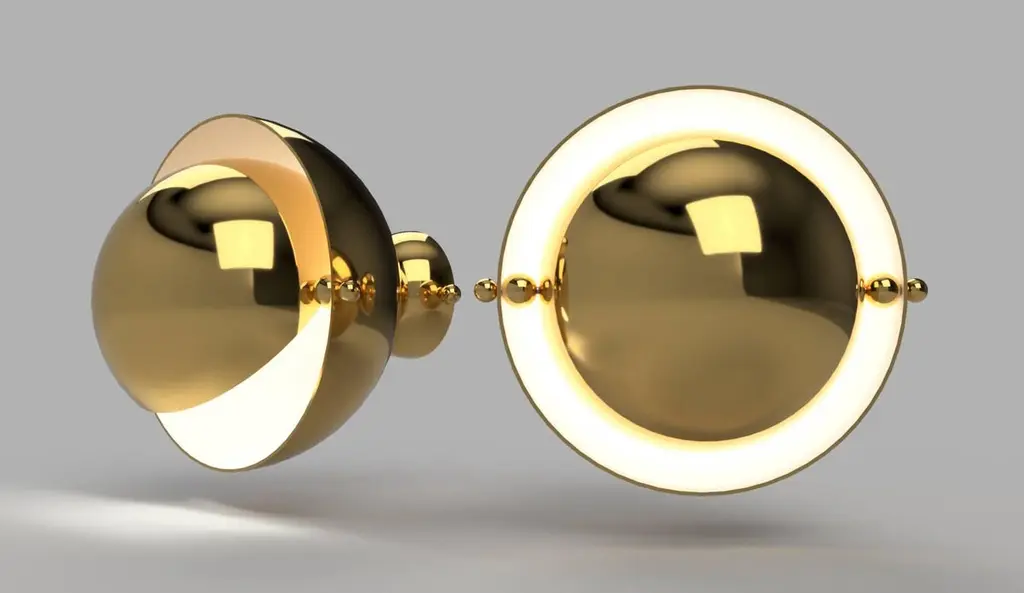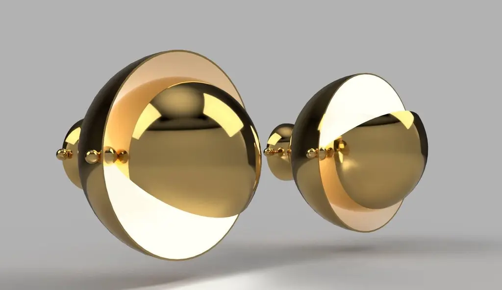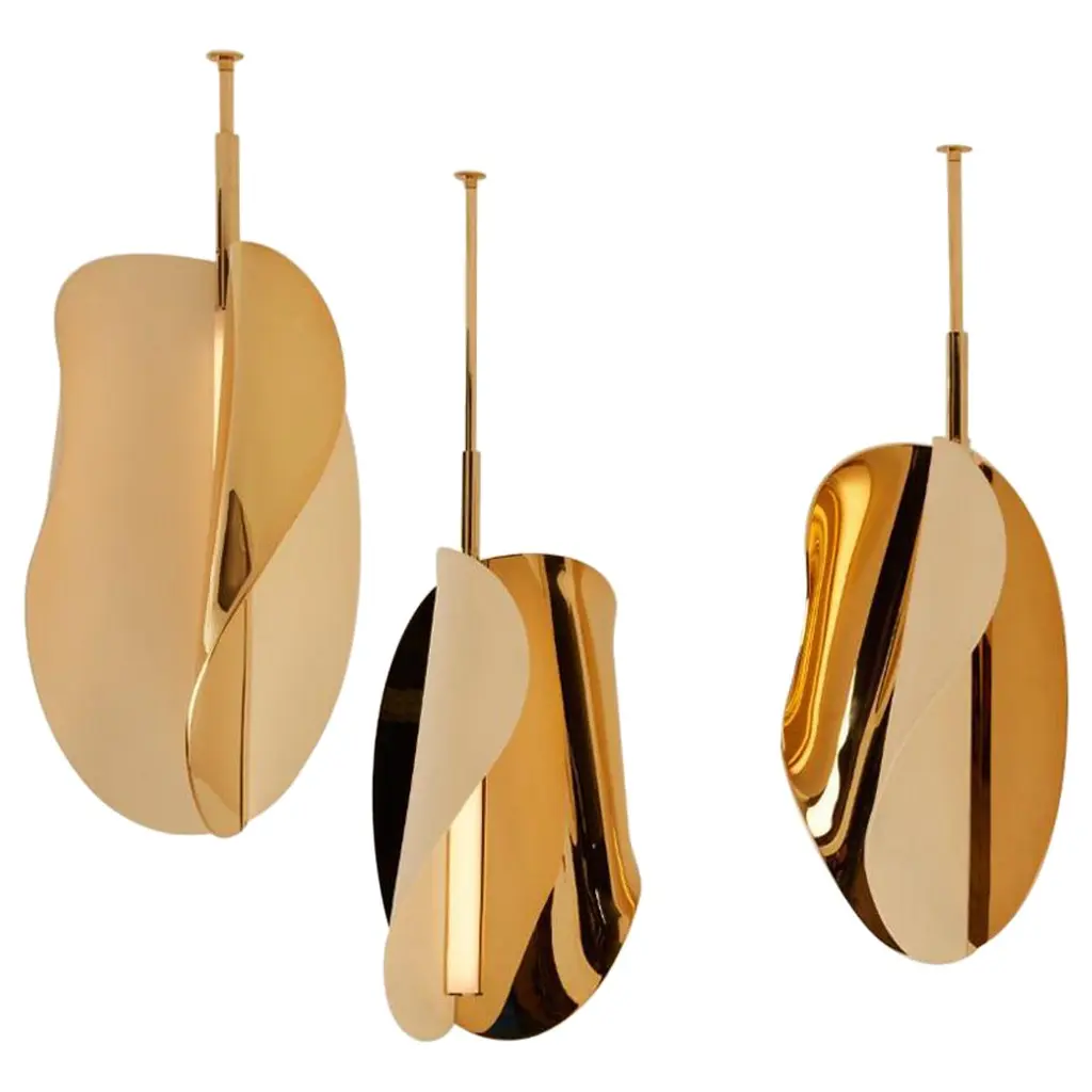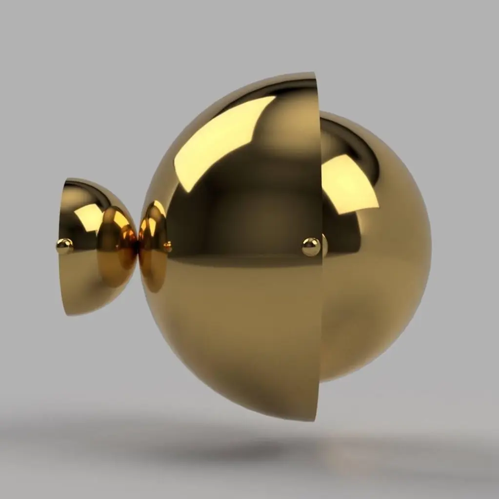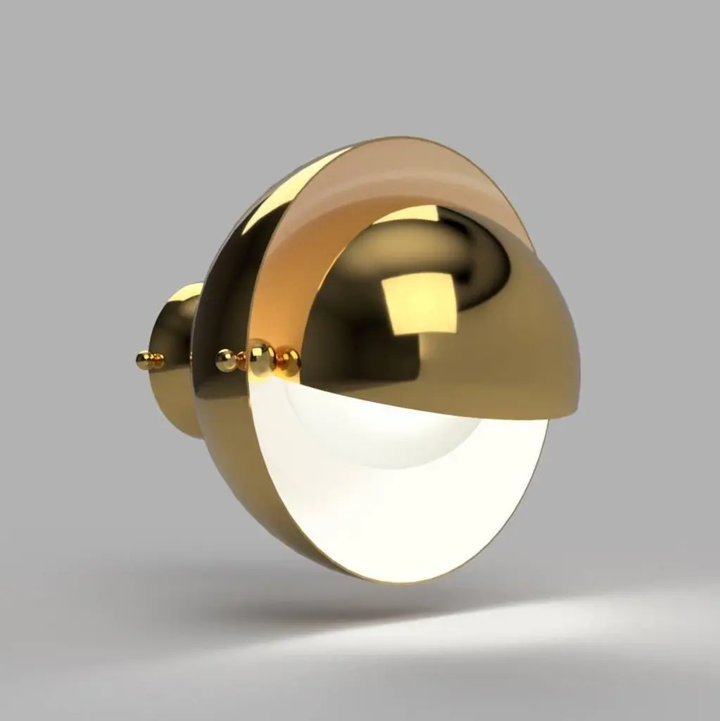 OTTO sconces, gilded Brass, Item, France.Handcrafted in Paris with high-quality brass polished and varnished. The inner face is white lacquered for an optimal light diffusion.Each sconce is composed of three brass hemispheres : The bigger is the main diffusor, the medium one, in the front, directs the luminous flux. The smallest, on the back hides the wall fixing. The assembly and the articulations are done by 6 brass balls. Each sconce are signed and numbered and comes with a certificat of authenticity.A timeless and radical design inspired by Art Deco and Seventies design.Registered Design. Creation Arthur Simonnet edited by ITEM.