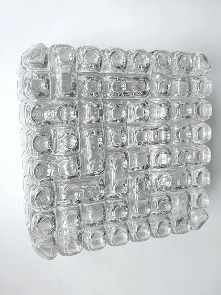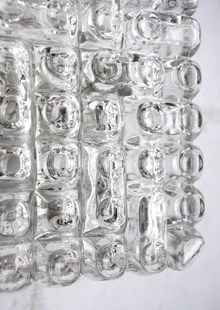 Beautiful pair of rare handblown clear glass flush mounts.Germany, 1960s.Lamp sockets: 2x E27 (US E26).