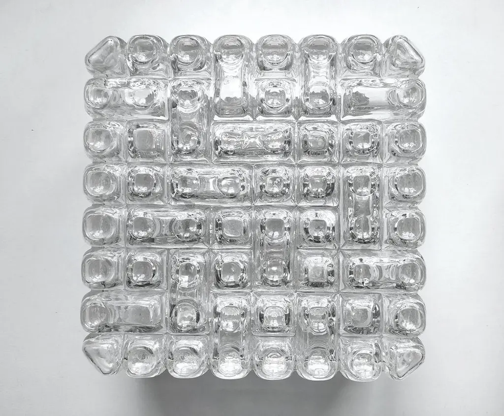 Pair Of Rare Geometric Blown Glass Ceiling Or Wall Flush Mounts Sconces, 1960s