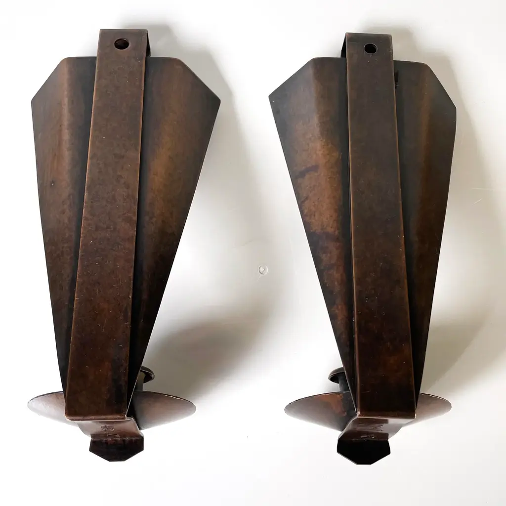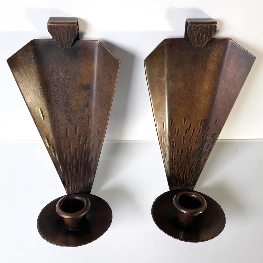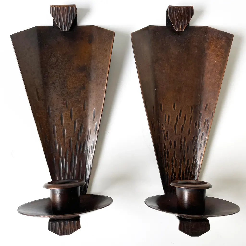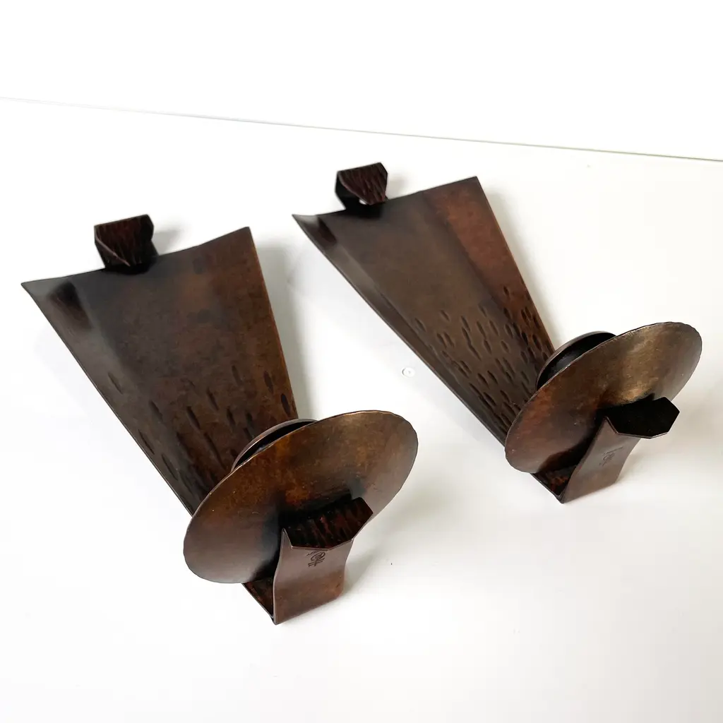 Pair Of Roycroft Arts & Crafts Copper Candle Sconces