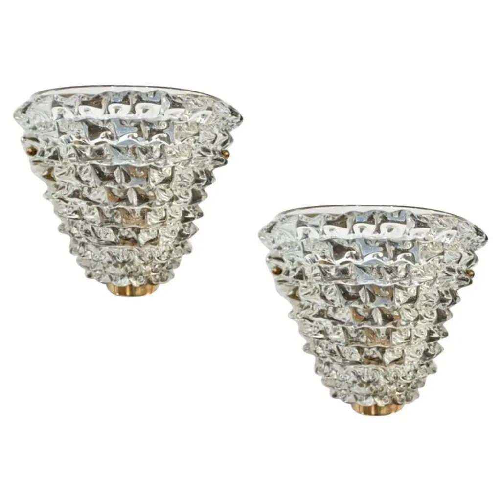 Pair Of Small Round Clear Textured Glass Wall Light, Limburg