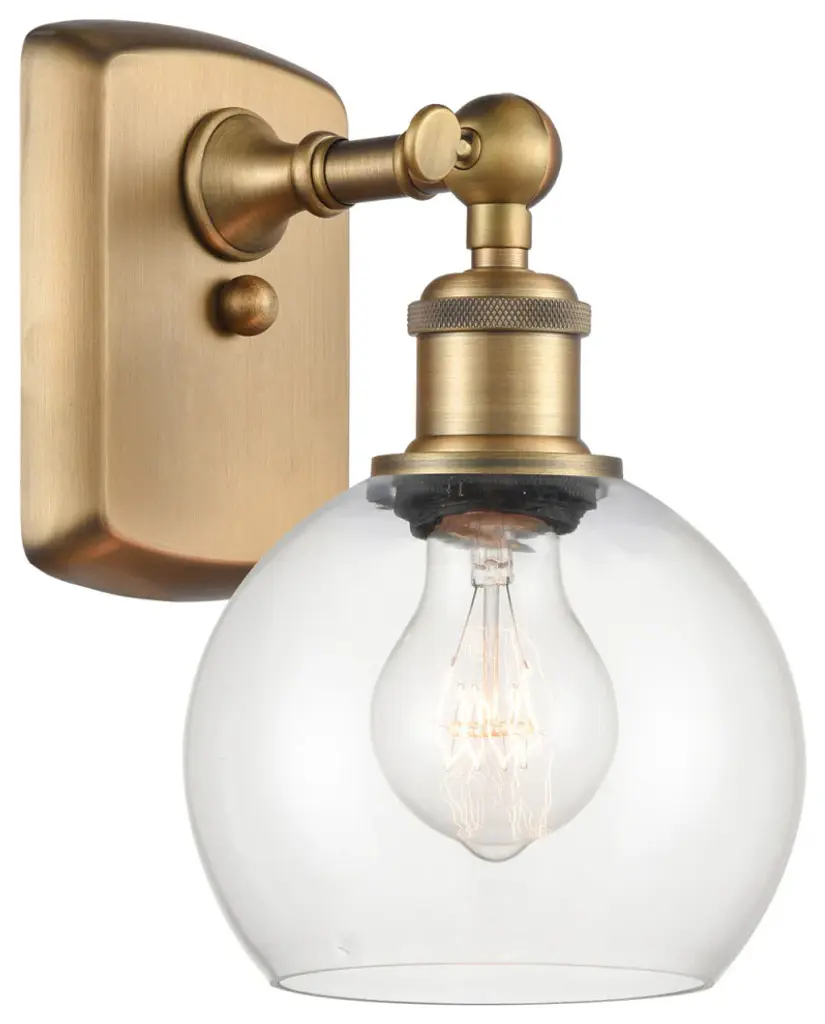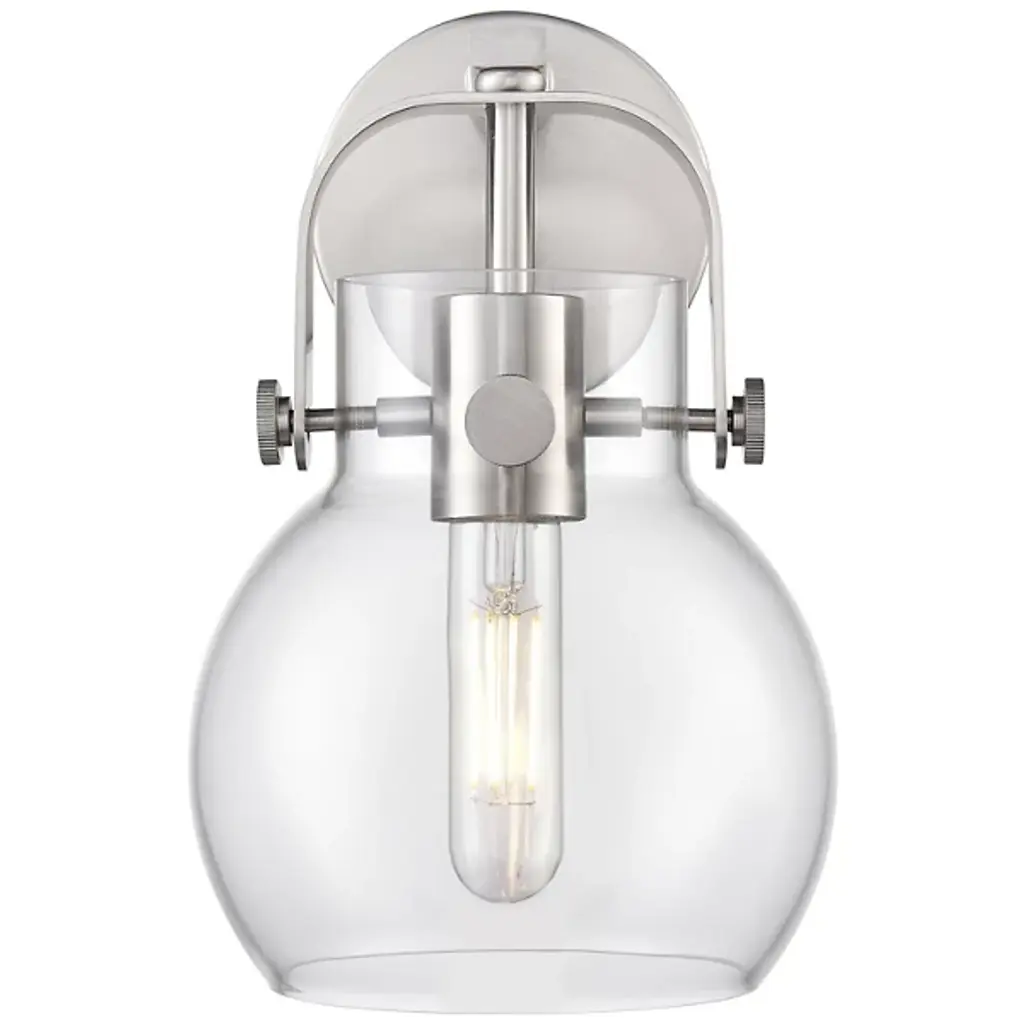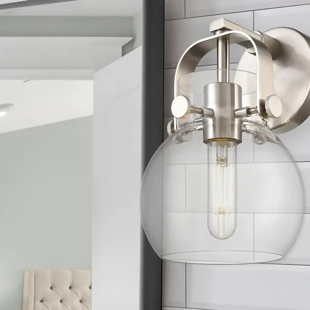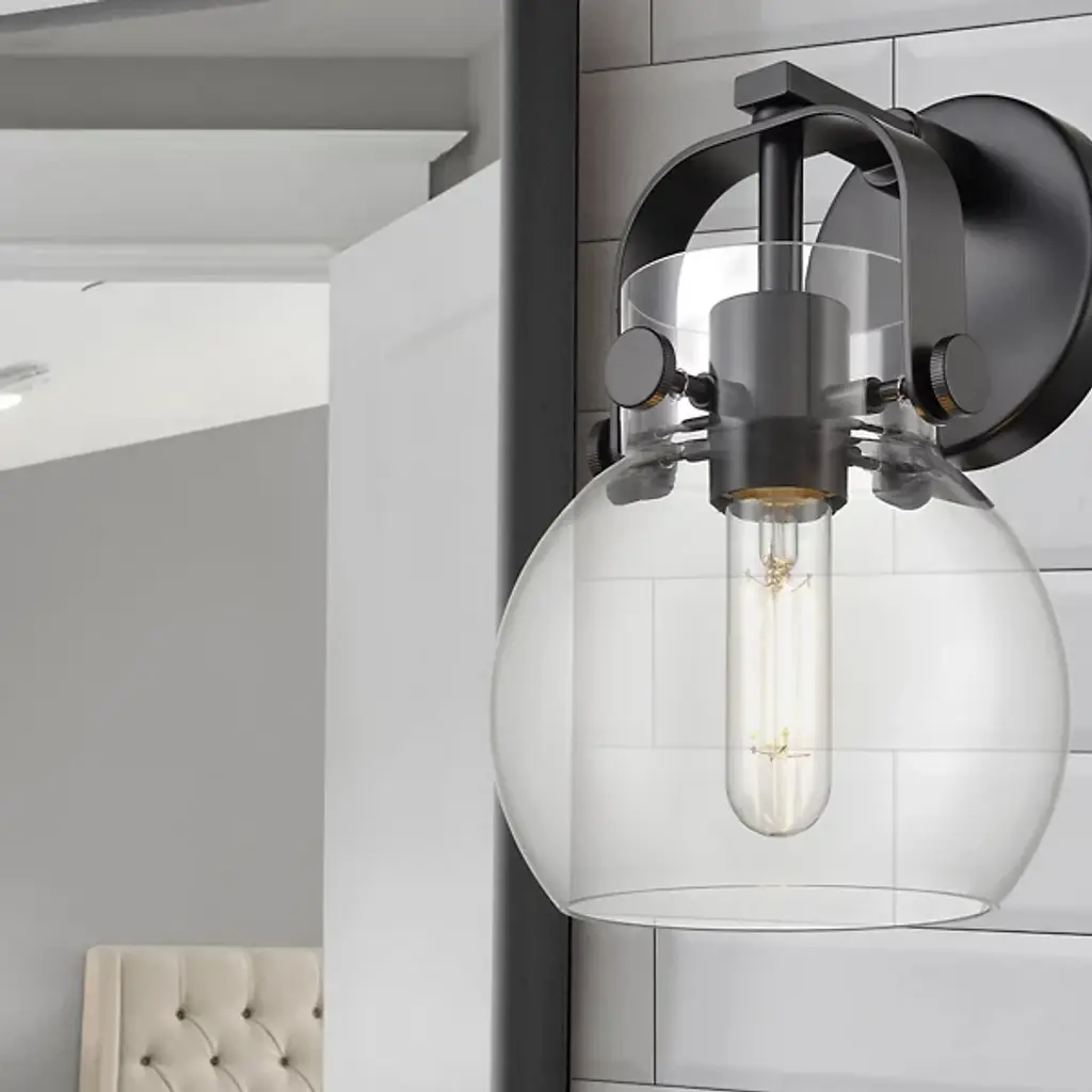The Paisley Globe Wall Sconce by Alder & Ore is the piece you need to add a soft, industrial element to modern décor. It features a smooth, spherical glass shade supported by an eye-catching yoke-style holder. The holder curves over the top of the shade and holds it securely with the help of metal pins. Use this wall sconce to brighten up and enhance the design appeal of a hallway, bathroom or other interior space.