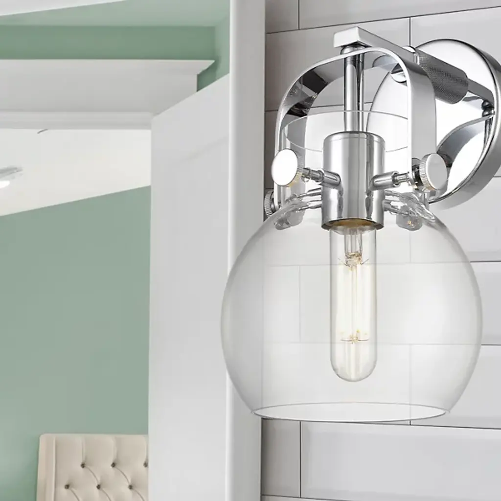 The Paisley Globe Wall Sconce by Alder & Ore is the piece you need to add a soft, industrial element to modern décor. It features a smooth, spherical glass shade supported by an eye-catching yoke-style holder. The holder curves over the top of the shade and holds it securely with the help of metal pins. Use this wall sconce to brighten up and enhance the design appeal of a hallway, bathroom or other interior space.