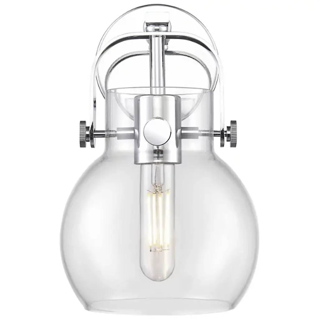 The Paisley Globe Wall Sconce by Alder & Ore is the piece you need to add a soft, industrial element to modern décor. It features a smooth, spherical glass shade supported by an eye-catching yoke-style holder. The holder curves over the top of the shade and holds it securely with the help of metal pins. Use this wall sconce to brighten up and enhance the design appeal of a hallway, bathroom or other interior space.
