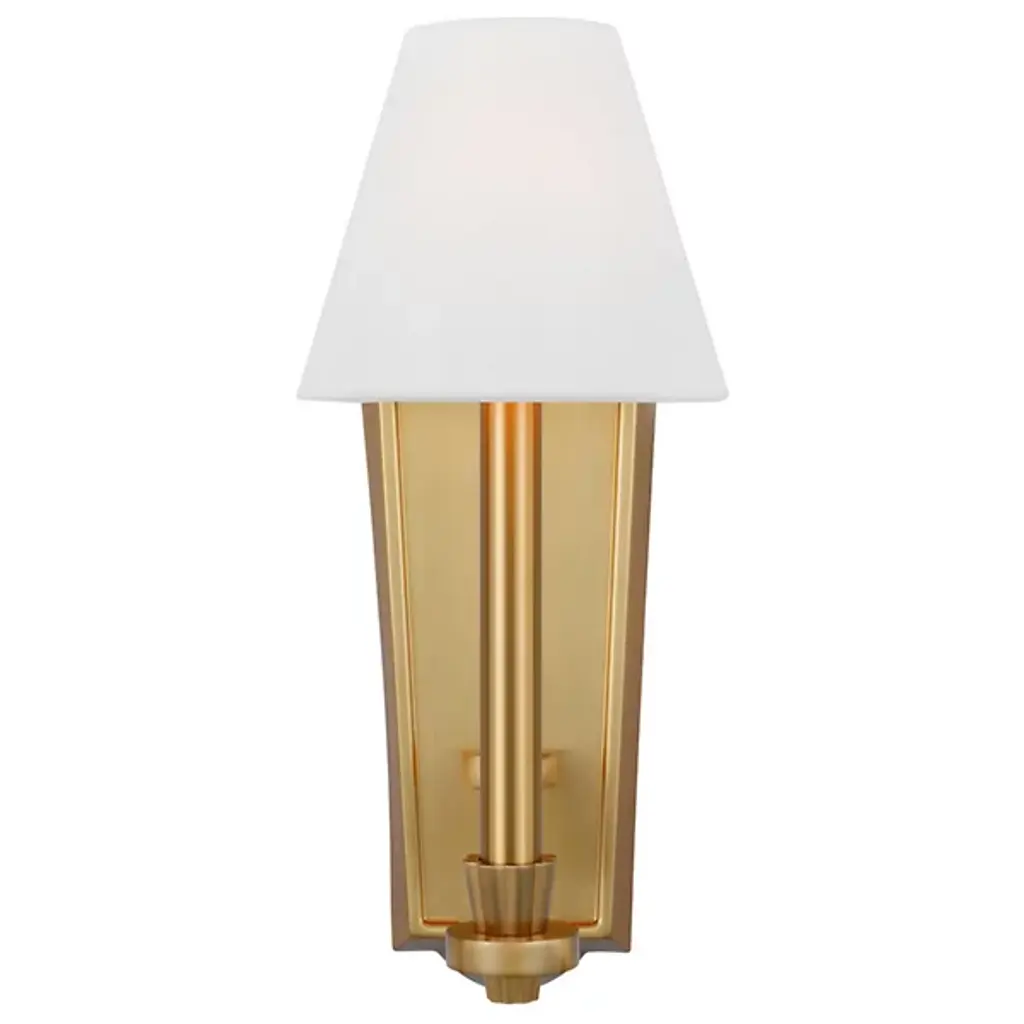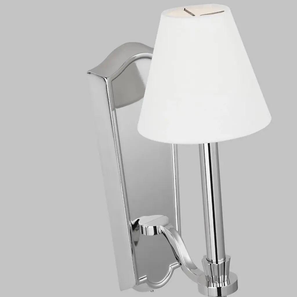 The Paisley Tall Wall Sconce is a classic rendition of lighting design from Visual Comfort Studio, formerly known as AH by Alexa Hampton, Completed in a beautiful finish, the steel mounting plate of the sconce is elegantly elongated. A subtly swooping arm flows out to hold a long stem capped by a white linen lamp shade. Light flows through the shade’s material, reflecting against the backplate for added visual interest. This is a versatile piece that fits well in a multitude of interior choices.