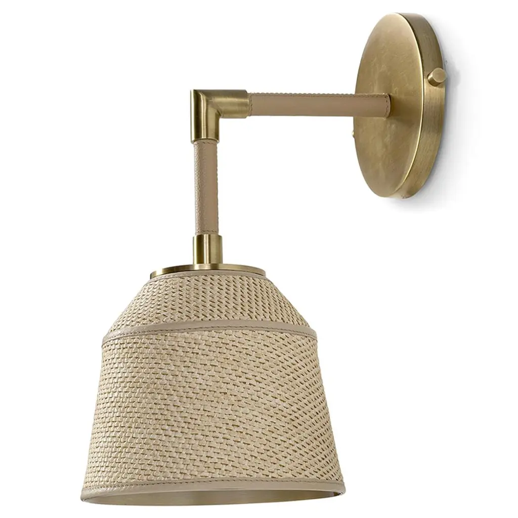 Palecek Capistrano Coastal Beach Natural Raffia Brass Armed Sconce