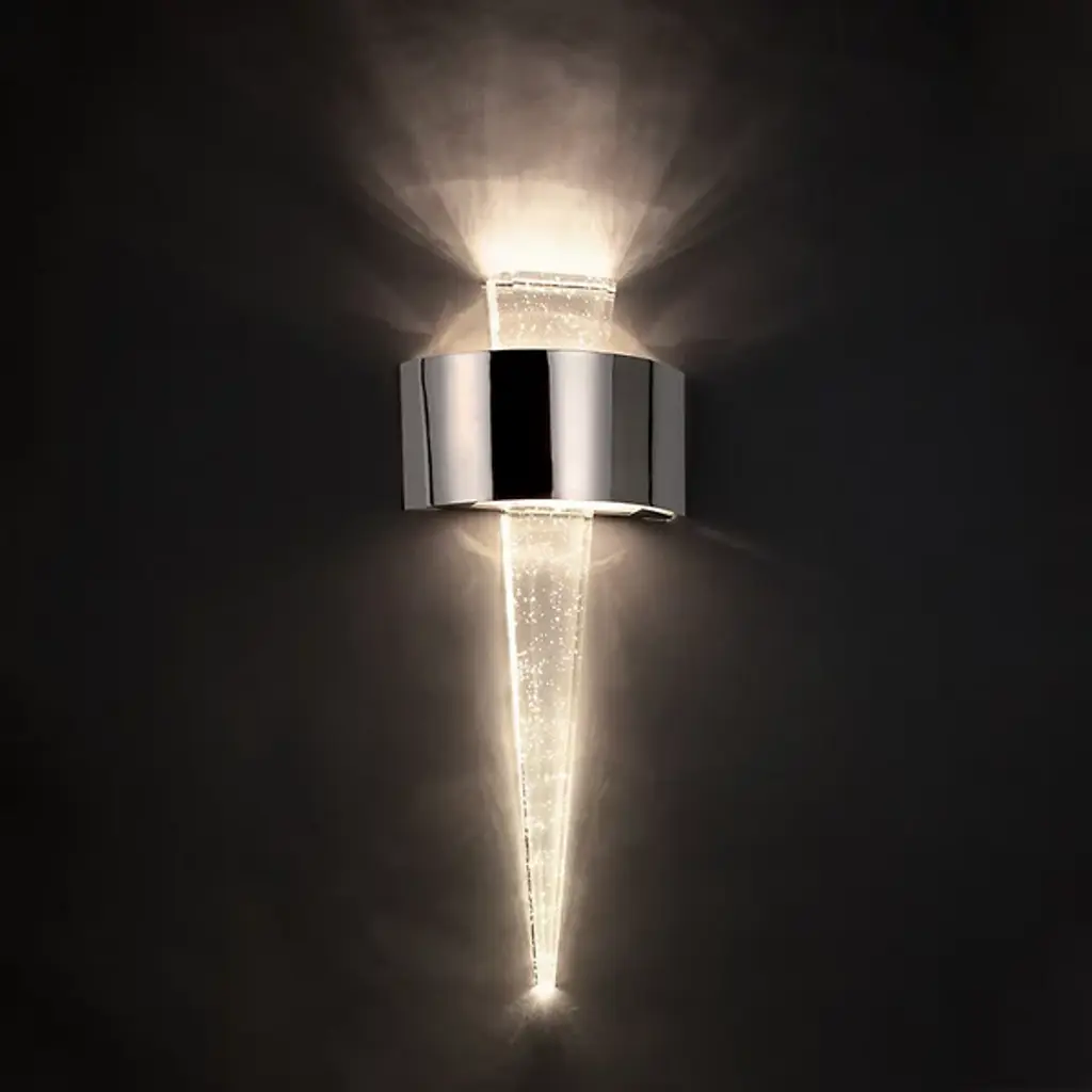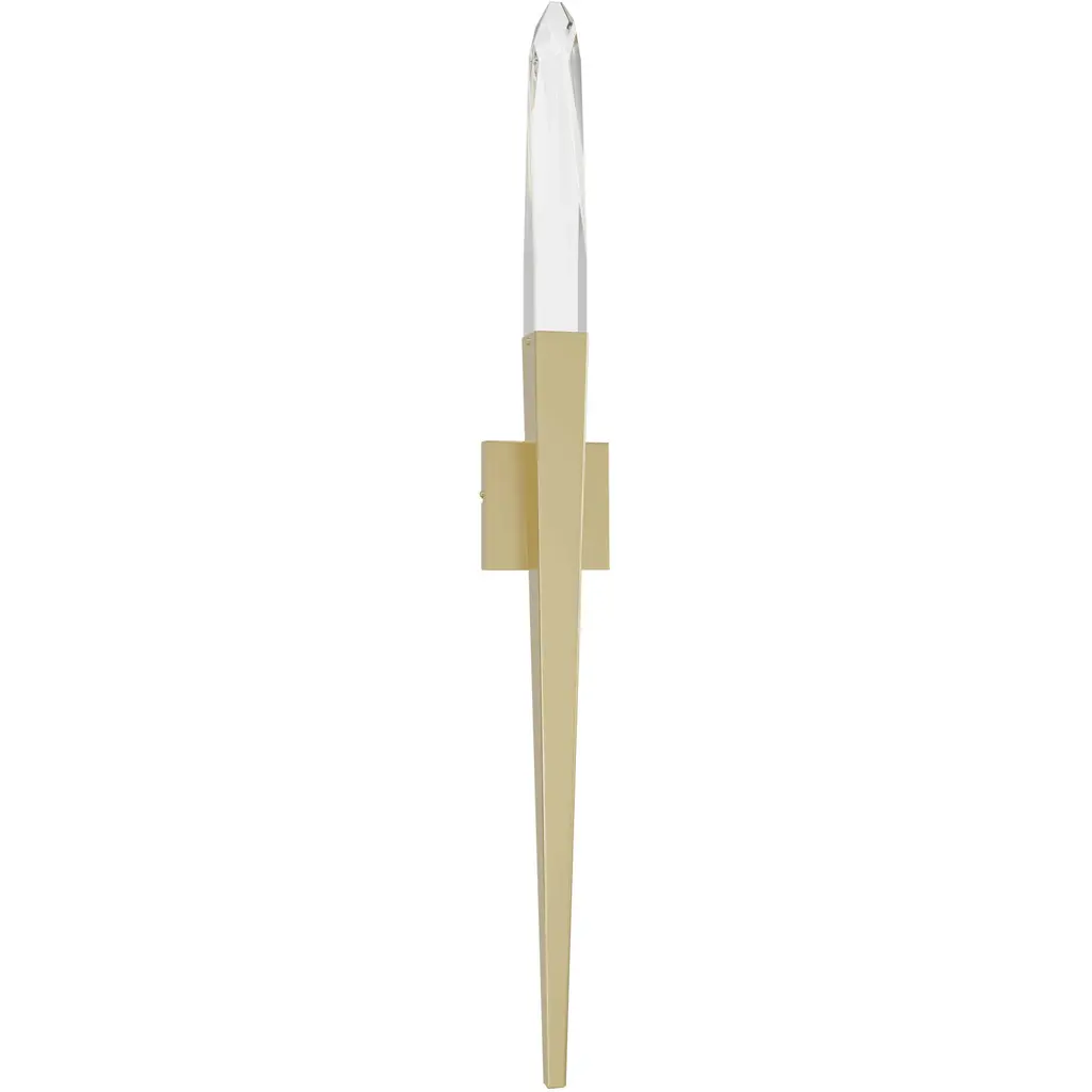 Dramatically glamorous. The Modern Forms Palladian Crystal LED Wall Sconce references the Hollywood Regency style, but with a clearly modern point of view. The half-round steel shade hugs the wall, concealing an energy-efficient LED array. A Clear seeded crystal spear plunges through the shade, drawing illumination up and down its length, with each bubble becoming another tiny point of light.