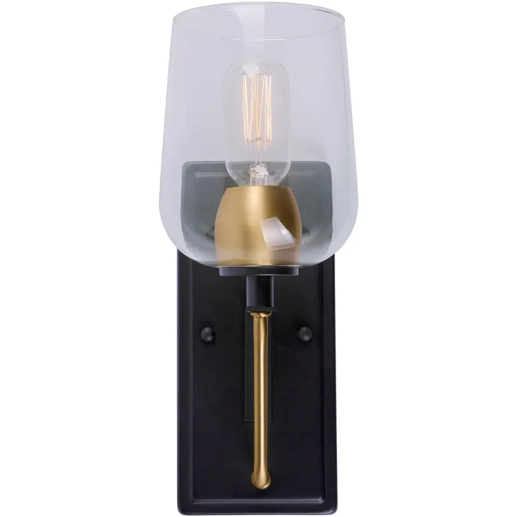 1-Light Black and Soft Gold Wall Sconce with Clear Glass