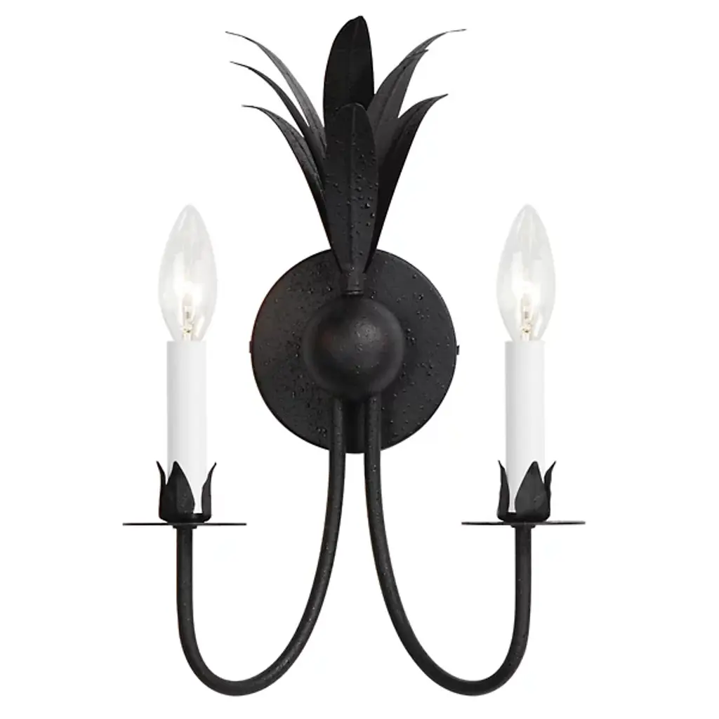 Give your home a botanical aesthetic with the Paloma Wall Sconce by Maxim Lighting. Crowned by lovely plumes, this sconce brings candelabra-style illumination to your living space with ease. A steel globe secures to a back at your wall. Slender arms neatly curve to unite with plates containing encased, candle-shaped bulbs, furnishing your home with a transitional look.