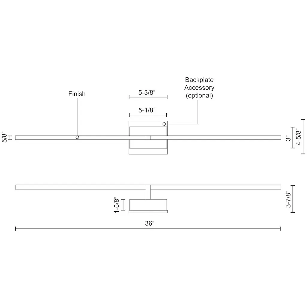 Dual square profile linear aluminum arms with rectangular wall mount. Inset opal polymeric diffusers. Finely textured plate or powder-coated finish. Wall emitting lights with rotational adjustment.