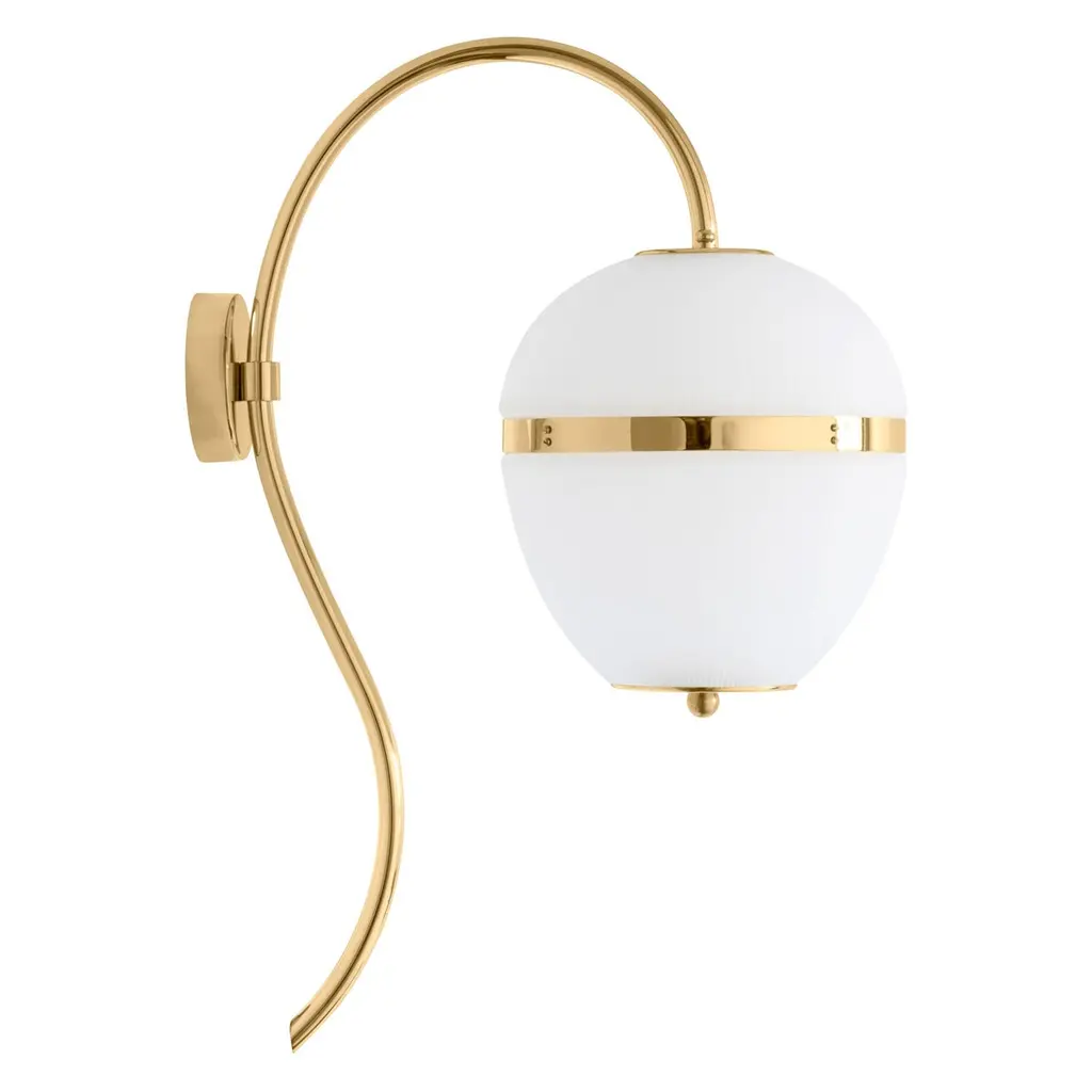 Papyrus brass wall lamp 06 by Magic Circus Editions.Dimensions: H 77 x W 25 x D 36.5 cm.Materials: Smooth brass, mouth blown glass.Sphere dimensions: 25 cm.Available finishes: brass, nickel.All our lamps can be wired according to each country. If sold to the USA it will be wired for the USA for instance.Rethinking, reimagining, redesigning familiar objects that we look at every day without ever really seeing them and using light to tell stories, this how Marie-Lise Féry sees her work. Offering a new take on our urban heritage, changing our perspective through her work on scale and usage. Since 2015, Magic Circus Éditions has been setting the world of lighting ablaze, creating airy, playful and magical designs that merge retro with sleek and contemporary. A free-spirited antiquarian, founder Marie-Lise Féry draws inspiration from the world of cabarets and the magic of the circus to give shape to imaginative, fun and playful collections. The air of magic she breathes into her work reveals a wealth of interpretations and widens possibilities for creative interiors. The combination of traditional know-how — outstanding craftsmanship — and her imaginative take on historical, everyday objects lends an unexpected and charming quality to her creations.Féry’s lights are designed just like magic lanterns — precursor to modern-day cinema —, inspiring wonder through oversized, seemingly weightless compositions and understated references. Each collection has its own inspiration: the first models of street lighting for Collection 01; the happy memories of funfairs, sweets and balloons for her latest collection Balloon; the Far East for Collection 02; and the colourful, carefree spirit of the 1970s for Pop-Up, released in 2019. Magic Circus Éditions draws on airy designs, dream-like inspirations, colours and fun to create a sense of enchantment.Magic Circus Éditions founder Marie-Lise Féry was born in Paris. After studyingart business, she moved to New York to start her career. Fascinated by the city’s architecture, she found an endless source of inspiration in the Big Apple’s monumental decors. Returning to France to settle down in Lyon, she opened an antiques gallery named Un Château en Espagne, and started telling her own stories through objects she gleaned on markets all around the country. A way for her to perpetuate her mother’s motto: “Objects with a soul will always belong”. Since 2015, the year she established Magic Circus Éditions, she has moved on to lighting as a new medium for telling her stories, bringing the magic of the show into home interiors. With her love for the circus, turn-of-the-century cabarets and music halls, Marie-Lise Féry’s love of unusual objects has remained strong, but now prefers to focus her attention on pieces she has imagined herself. With a fun and light-spirited approach, she creates a bold visual effect that elicits instant attraction. She collaborates with some of Europe’s greatest artisans, from Prague and Murano to Clermont-Ferrand, working for instance with a Czech company specialising in sculpting glass using a diamond-blade saw, or an auto body shop renowned for their work with lacquers. The refinement of shapes and finishes, bespoke designs and technical excellence all contribute to creating pieces that inspire surprise and wonderment. In the manner of Wes Anderson in Grand Budapest Hotel, blending together elegance, humour and unexpected details, her designs never fail to surprise. Attentive to the effect of her designs both in daylight and at night, Marie-Lise Féry takes us on a journey through space (from outside to inside) and time (from yesterday to today).