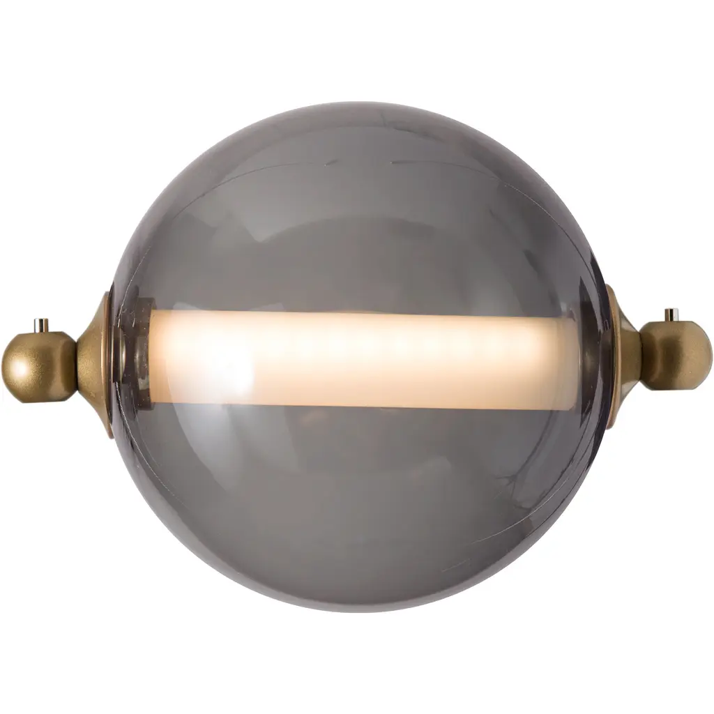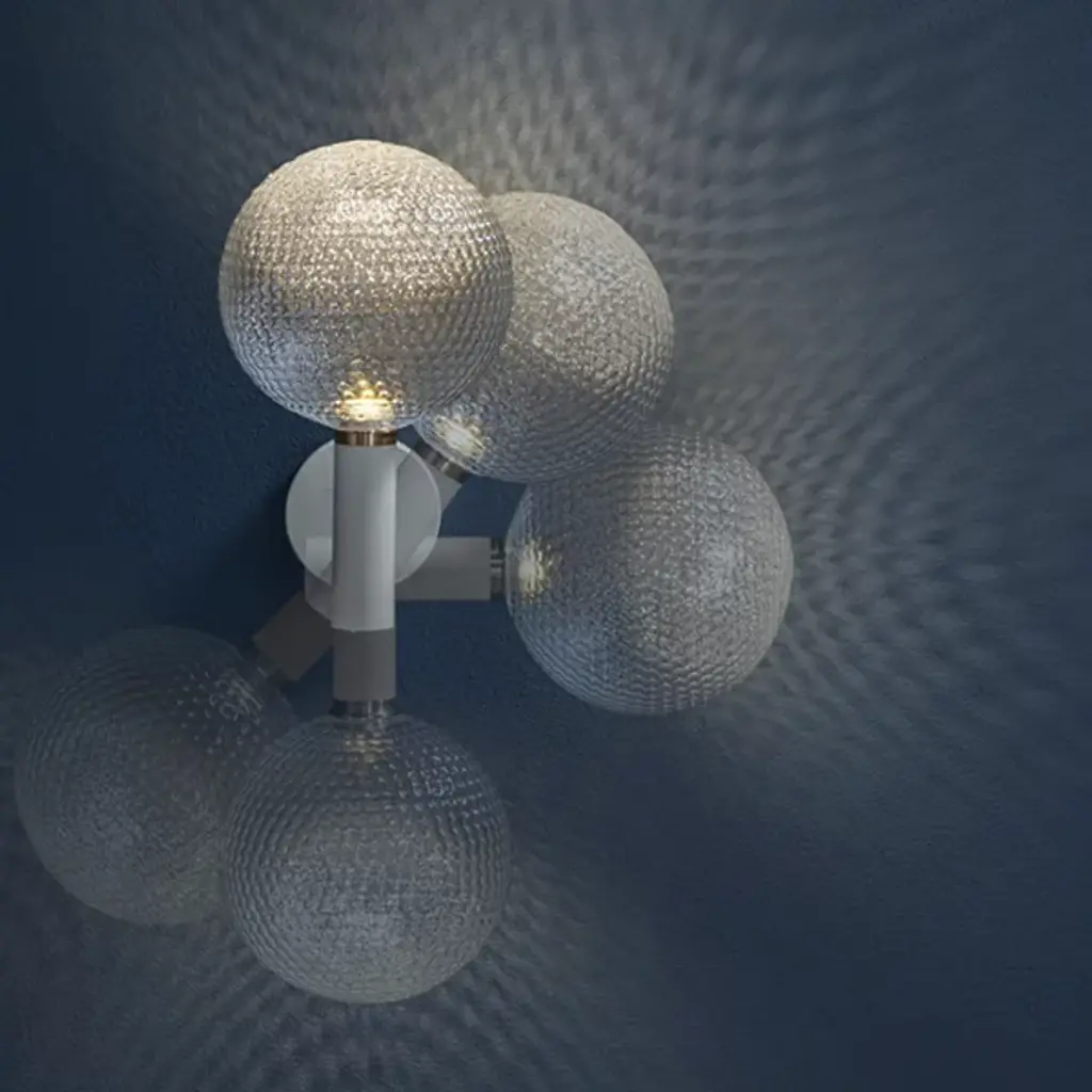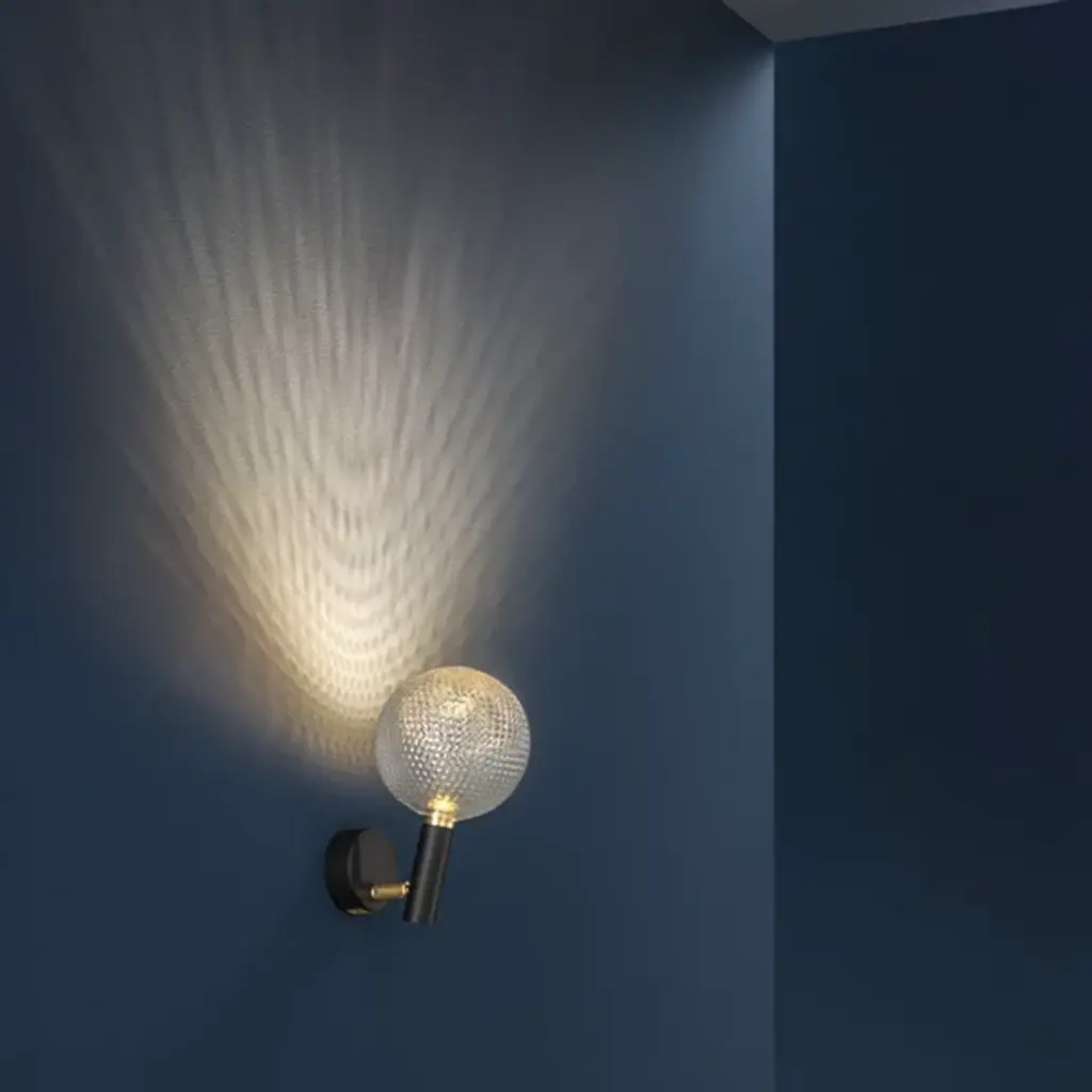 The Par 18 LED Wall Sconce from Catellani & Smith features a distinctive interaction between light and uneven surfaces. Characterized by irregular blown glass shades, Bohemian master glassmakers craft a playful design that resembles a golf ball, maintaining the transparency of the glass and emitting high-quality light. A brass joint on the base enables rotation, letting you position the direction of light into the desired position to create exciting effects on your wall.