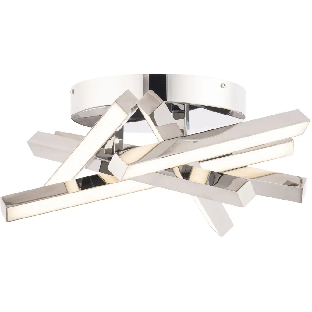 The ultimate display of linear style and advanced technology with distinctive, clean lines and a crisp design. Available in 16, 32 and 42-inch sizes, Parallax is a streamlined complex structure of luminosity. This flush mount is a criss-cross of drama and brilliant illumination that creates plenty of interest with its overlapped, linear design. Energy-efficient integrated LED's provide a long-lasting maintenance-free bright and even illumination. PC diffusers fit precisely in the aluminum frame to form clean lines of direct illumination. Available in 3 different finishes of black, brushed nickel and chrome, it installs as a ceiling mount or use it as a wall sconce of exaggerated proportions. NEW: Tri-CCT technology features a switch inside the canopy that is accessible during installation and allows you to toggle color temperatures between 2700K Warm - 3000K Warm White - 3500 White to find and set the perfect color temperature for your space. This fixture is factory pre-set to a default 3000K setting for consistency and can be modified in the field during installation.
