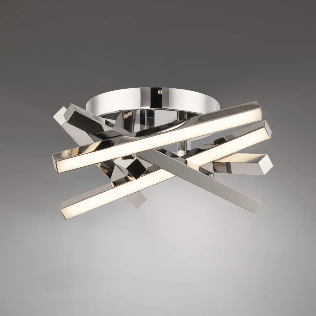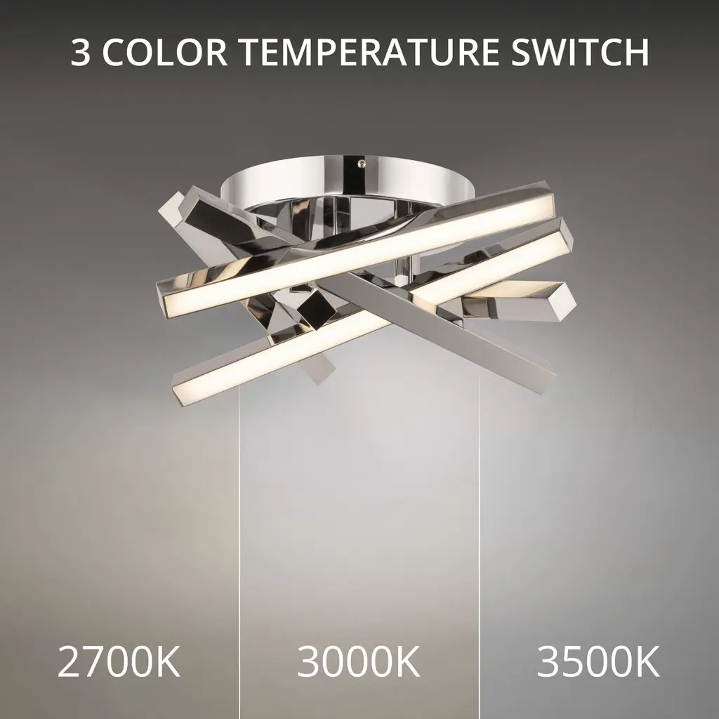 The ultimate display of linear style and advanced technology with distinctive, clean lines and a crisp design. Available in 16, 32 and 42-inch sizes, Parallax is a streamlined complex structure of luminosity. This flush mount is a criss-cross of drama and brilliant illumination that creates plenty of interest with its overlapped, linear design. Energy-efficient integrated LED's provide a long-lasting maintenance-free bright and even illumination. PC diffusers fit precisely in the aluminum frame to form clean lines of direct illumination. Available in 3 different finishes of black, brushed nickel and chrome, it installs as a ceiling mount or use it as a wall sconce of exaggerated proportions. NEW: Tri-CCT technology features a switch inside the canopy that is accessible during installation and allows you to toggle color temperatures between 2700K Warm - 3000K Warm White - 3500 White to find and set the perfect color temperature for your space. This fixture is factory pre-set to a default 3000K setting for consistency and can be modified in the field during installation.