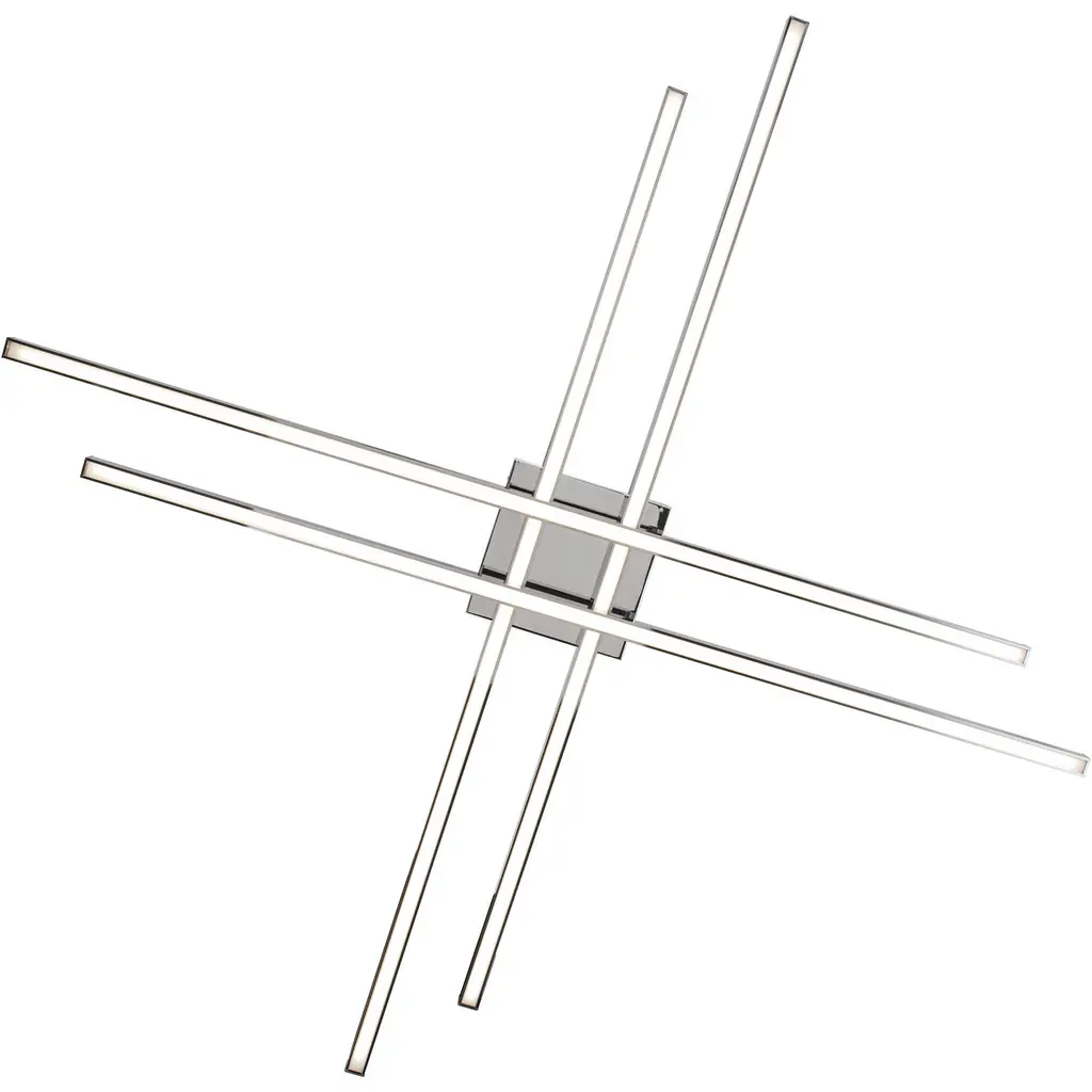 The ultimate display of linear style and advanced technology with distinctive, clean lines and a crisp design. Available in 16, 32 and 42-inch sizes, Parallax is a streamlined complex structure of luminosity. This flush mount is a criss-cross of drama and brilliant illumination that creates plenty of interest with its overlapped, linear design. Energy-efficient integrated LED's provide a long-lasting maintenance-free bright and even illumination. PC diffusers fit precisely in the aluminum frame to form clean lines of direct illumination. Available in 3 different finishes of black, brushed nickel and chrome, it installs as a ceiling mount or use it as a wall sconce of exaggerated proportions. NEW: Tri-CCT technology features a switch inside the canopy that is accessible during installation and allows you to toggle color temperatures between 2700K Warm - 3000K Warm White - 3500 White to find and set the perfect color temperature for your space. This fixture is factory pre-set to a default 3000K setting for consistency and can be modified in the field during installation.