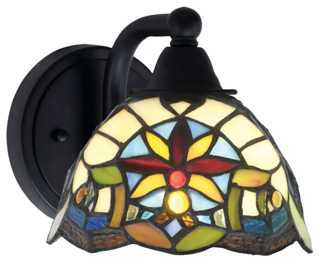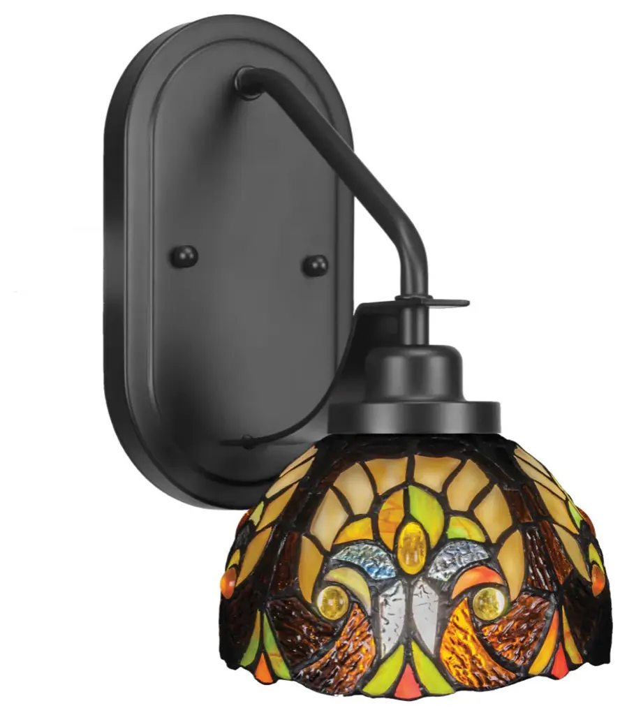 Paramount 1-Light Wall Sconce, Matte Black, 7" Earth Star Art Glass