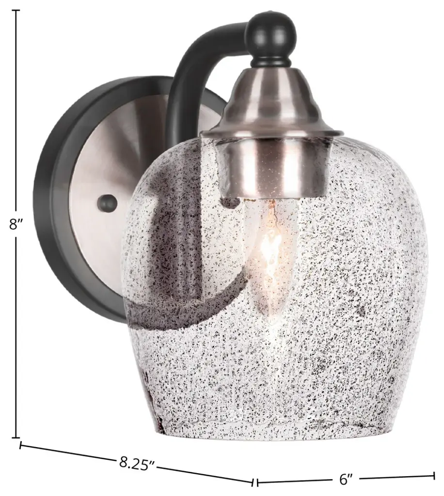 Paramount 1-Light Wall Sconce, Matte Black & Brushed Nickel, 6" Smoke Bubble