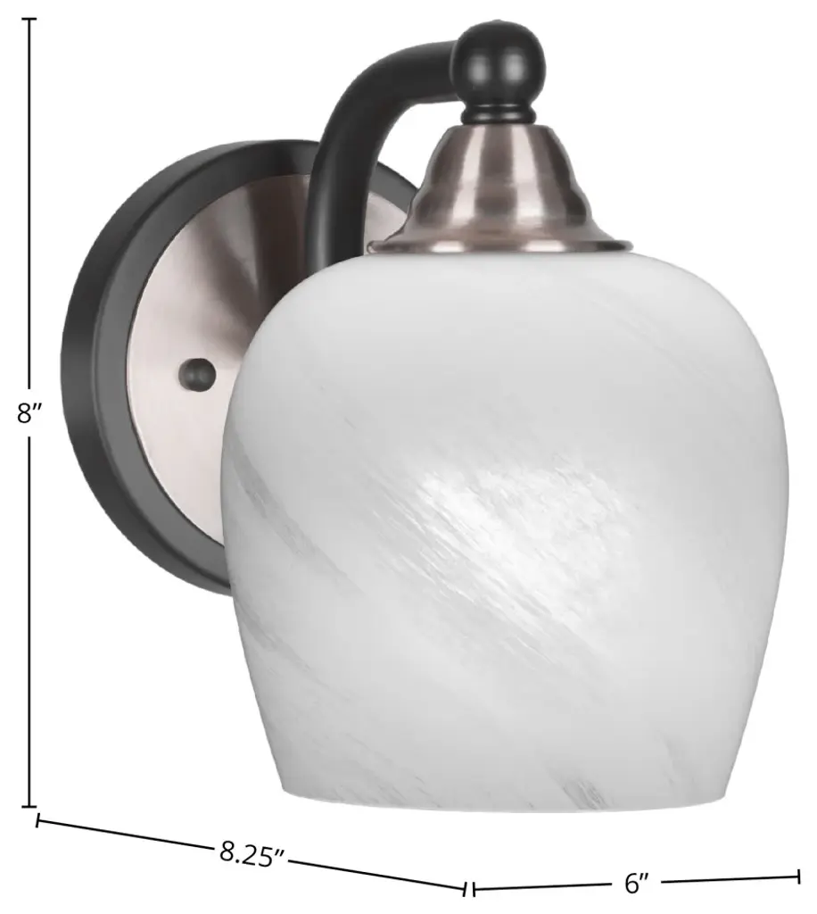 Paramount 1-Light Wall Sconce, Matte Black & Brushed Nickel, 6" White Marble